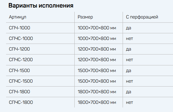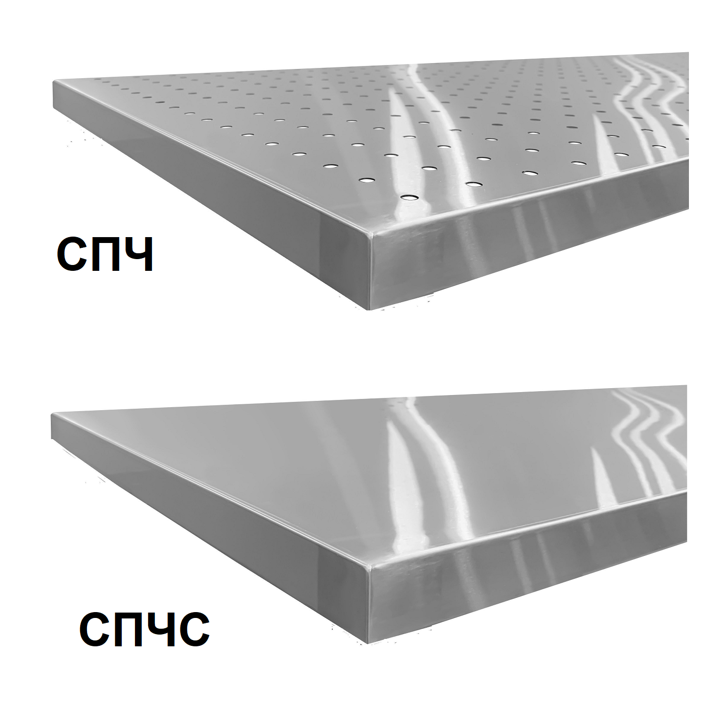 Вариант столешницы без перфорации обозначается СПЧС. Возможно изготовление конструкции по чертежам с изменением вида перфорации поверхности и размеров стола.