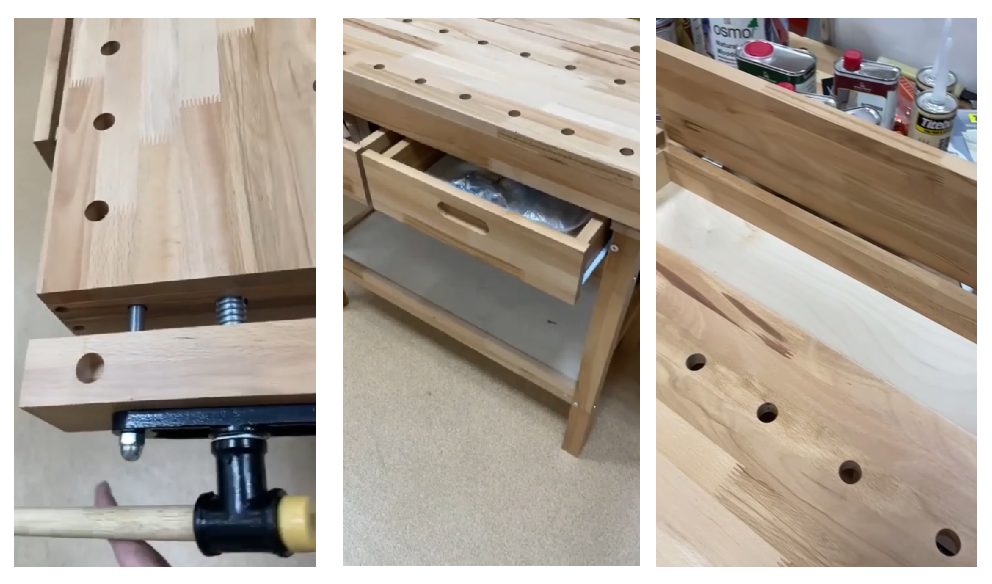 Основание из бука конечно же крепче и жестче чем из сосны - потому и взял. И не люфтит даже при серьезной нагрузке. Столешница качественно выполнена. Тиски отлично фиксируют заготовки, без проскальзывания. Верстак мне оптимален по габаритам, отлично вписался в комнате. Привлекла цена покупки, купил не зря!