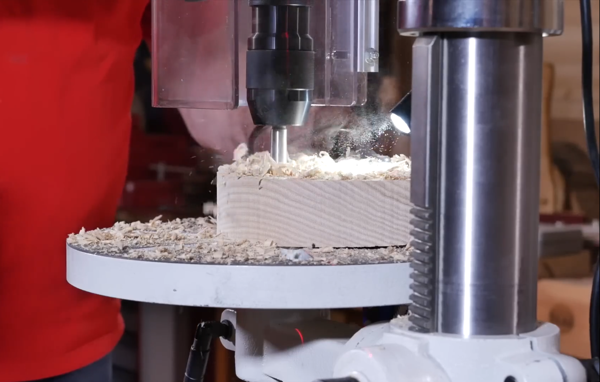 Рабочая область с прорезями есть и на основании станка, позволит работать от него, тогда расстояние до шпинделя будет достигать 1244 мм.