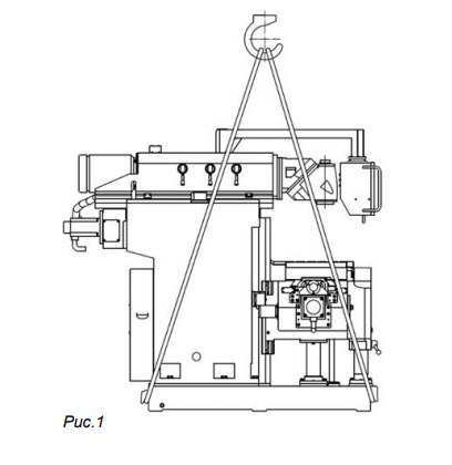 иначе она поцарапает краску на поверхности станка. Открыв коробку, проверьте все принадлежности согласно упаковочному листу. Если что-то не соответствует или повреждено, своевременно сообщите дилеру или производителю для разрешения вопросов. Переместите станок с помощью погрузчика. Установите стальной проволочный трос, как показано на рис. 1 для транспортировки станка краном. Во время транспортировки при необходимости обратитесь за помощью.