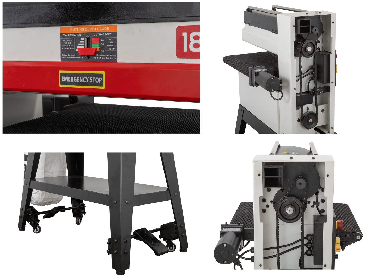Консольный тип станка даст возможность обработать не только стандартную ширину в 457мм, но и двойную ширину с переворотом. Потребуется определенный навык и, не надо думать, что это могут быть огромные, тяжелые щиты. Эта опция станет спасительным выходом из ситуации.