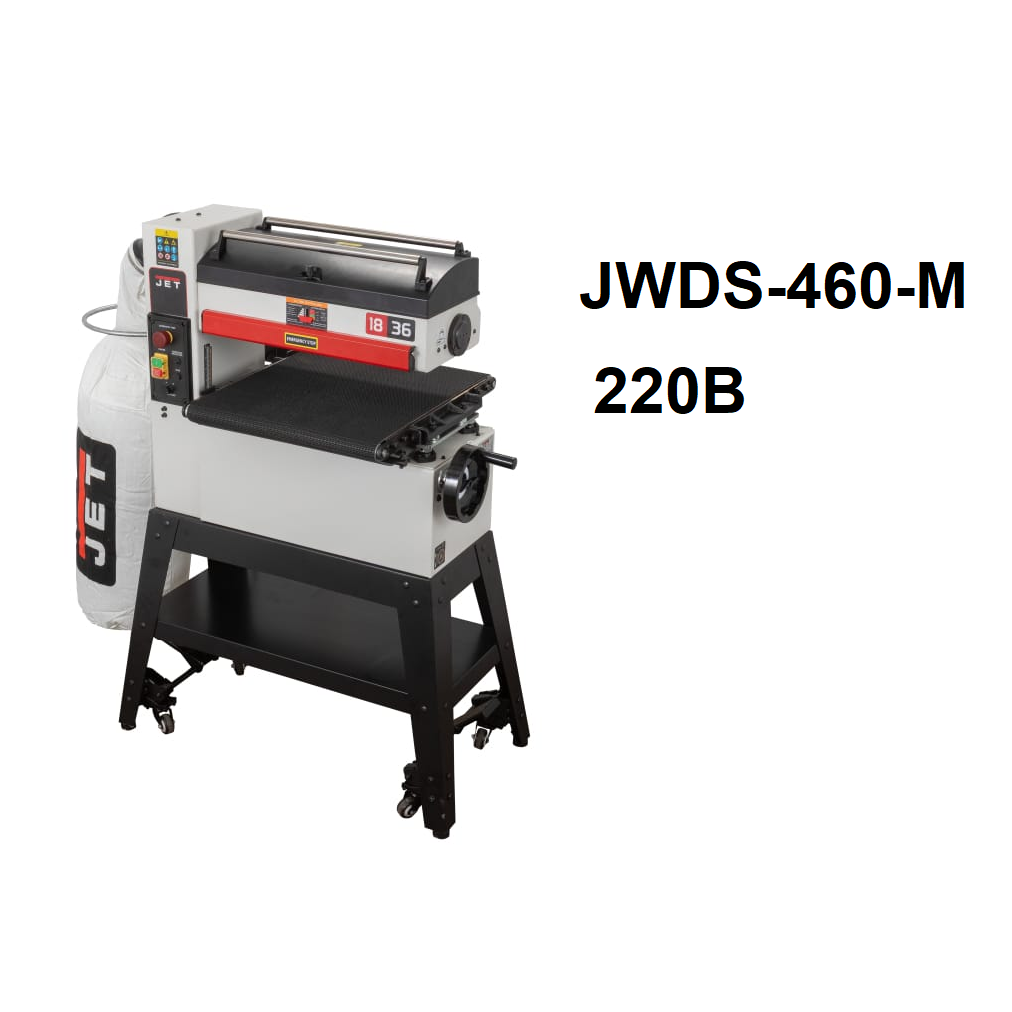 Запущенный двигатель, через ременную передачу вращает шлифовальный барабан с намотанной шлиф. лентой. Второй мотор двигает транспортер в направлении барабана с выбранной скоростью. Заготовка, которая уложена на подающий транспортер, перемещается через рабочую зону. В рабочей зоне ее подхватывает подающий ролик, прижимает к ленте. Последовательно вступает в работу шлифовальный вал и после него принимающий ролик. Т.о. во время основной работы заготовка плотно прижата к ленте транспортера, а вал вращается на встречу и снимает с нее нужную толщину. Скорость движения заготовки можно менять от 0,5 до 4 -х метров в минуту. Оператор вручную укладывает заготовку на рабочий стол, вручную принимает ее с противоположной стороны. «Чище» шлифовка происходит в направлении волокон, но в JWDS-460-M можно работать также поперек волокон, и по диагонали. Обработка в барабанных шлифовщиках считается финишной, требует только небольшой чистовой дошлифовки.