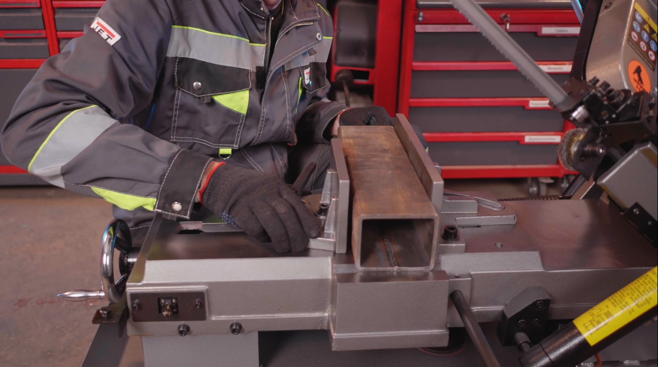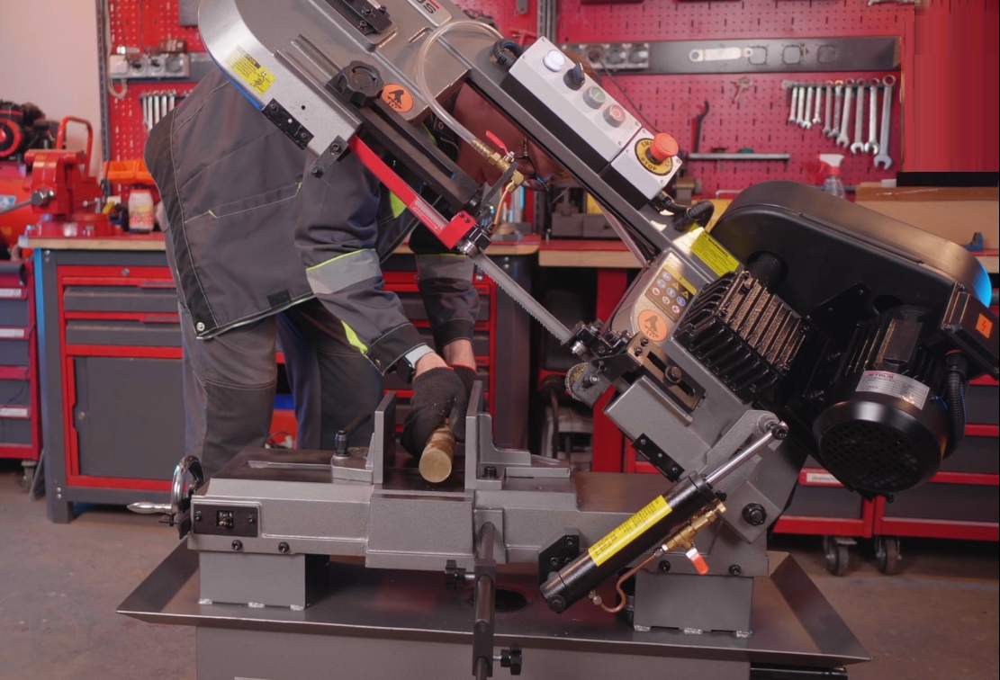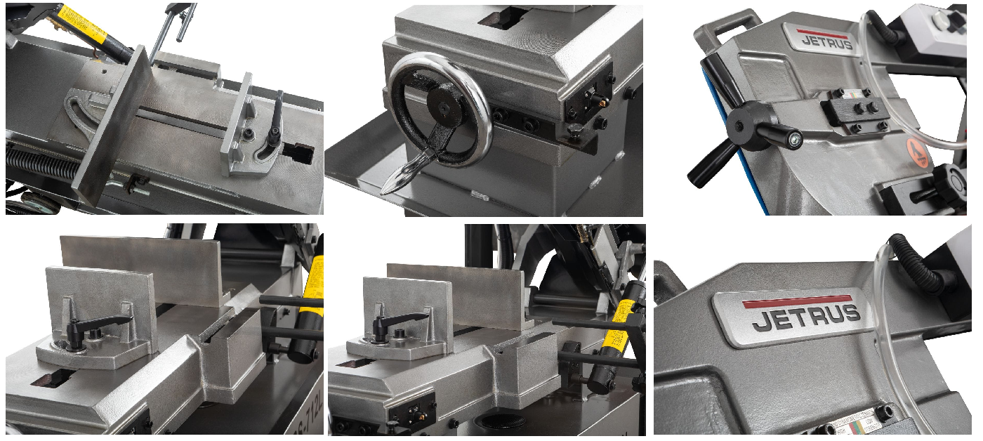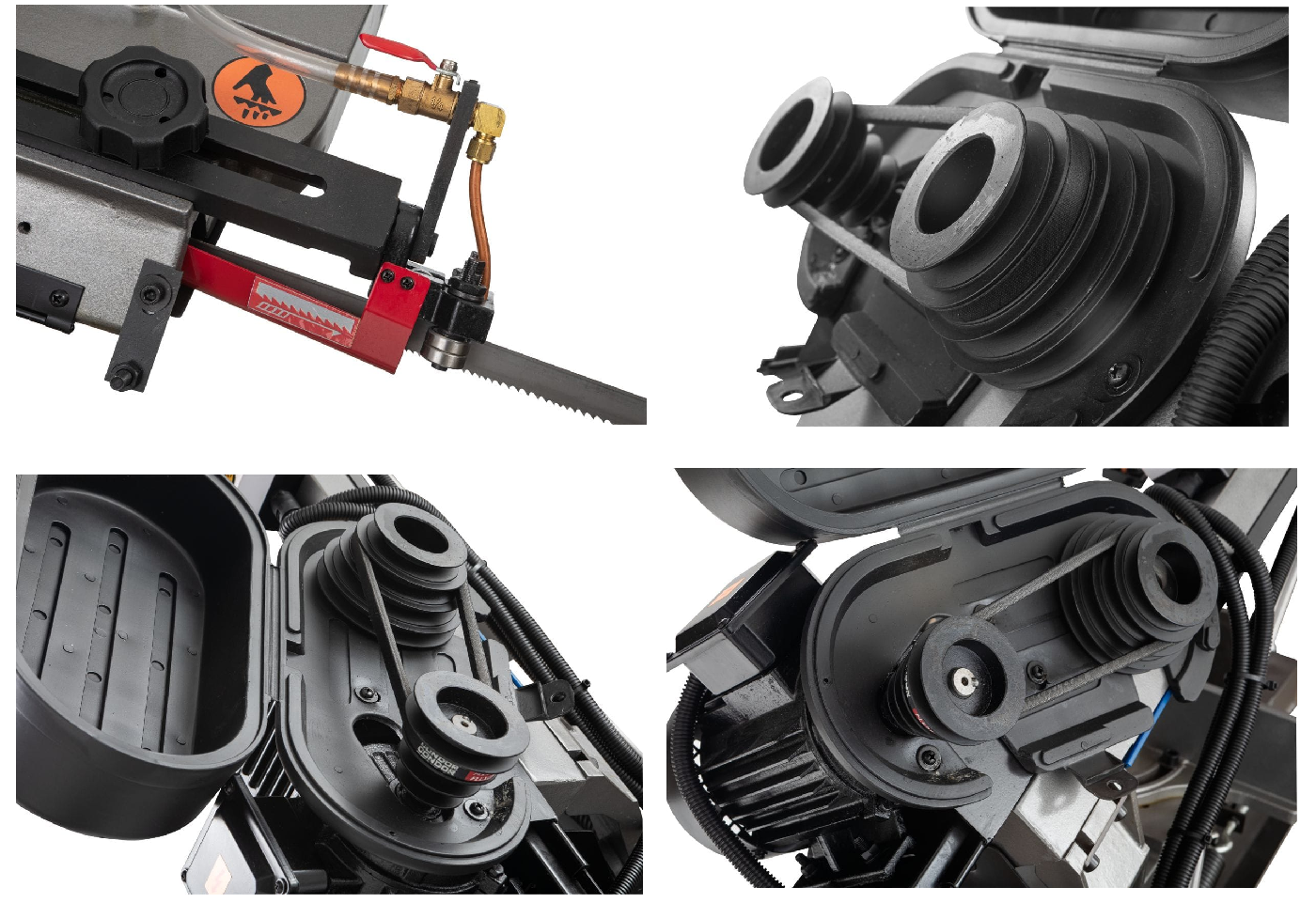 Оборудован системой подачи СОЖ непосредственно в зону резания. Натяжение ленточного полотна регулируется вручную.