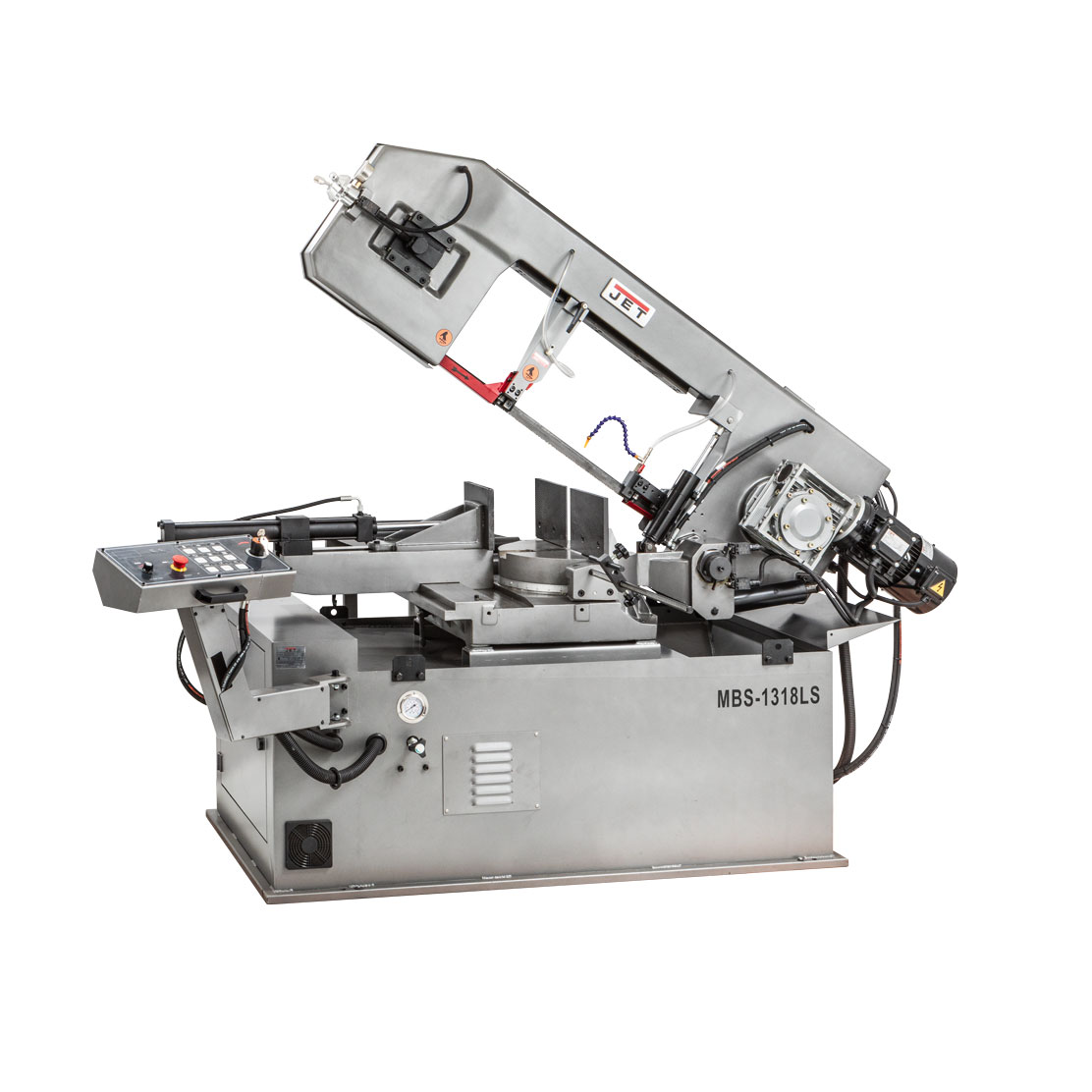 Тяжелая литая консоль и большие тиски с гидрозажимом, позволят выполнять пиление металлических заготовок большого диаметра.