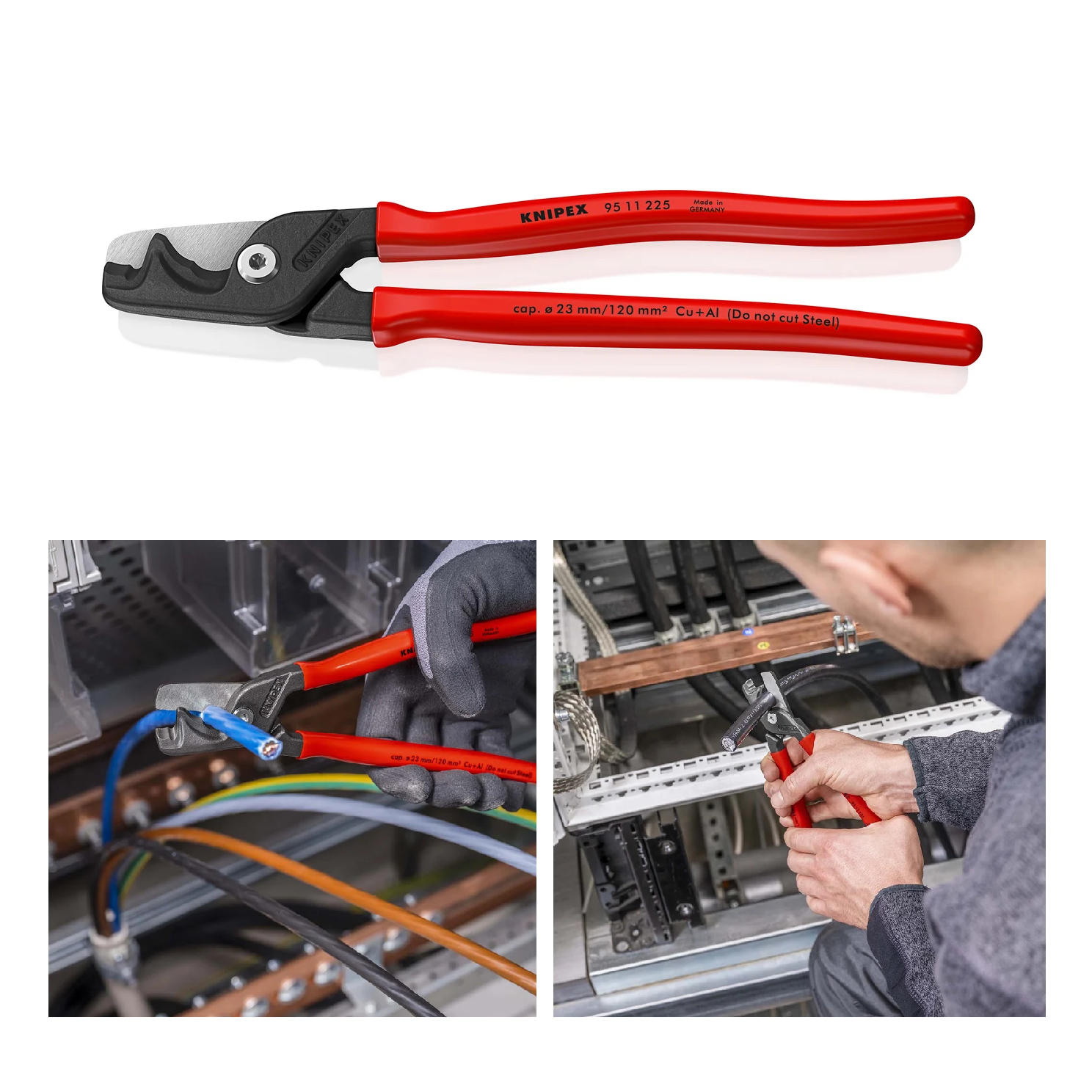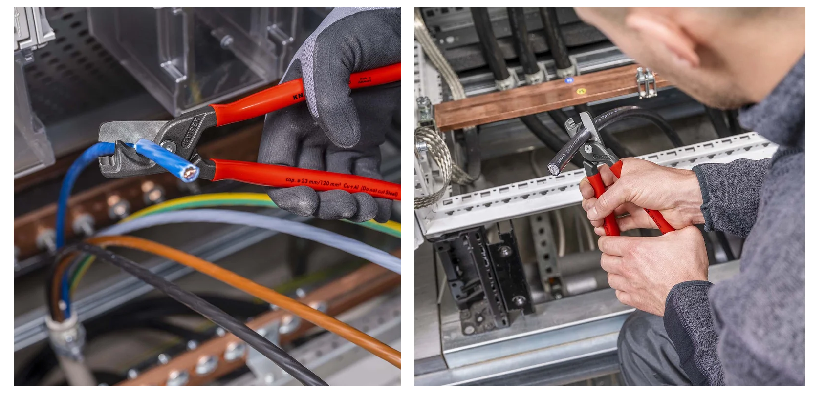 Отличная режущая способность: разрезает одножильные медные или алюминиевые кабели сечением до 35 мм², многожильные кабели сечением до 70 мм² и тонкие многожильные кабели сечением до 120 мм².