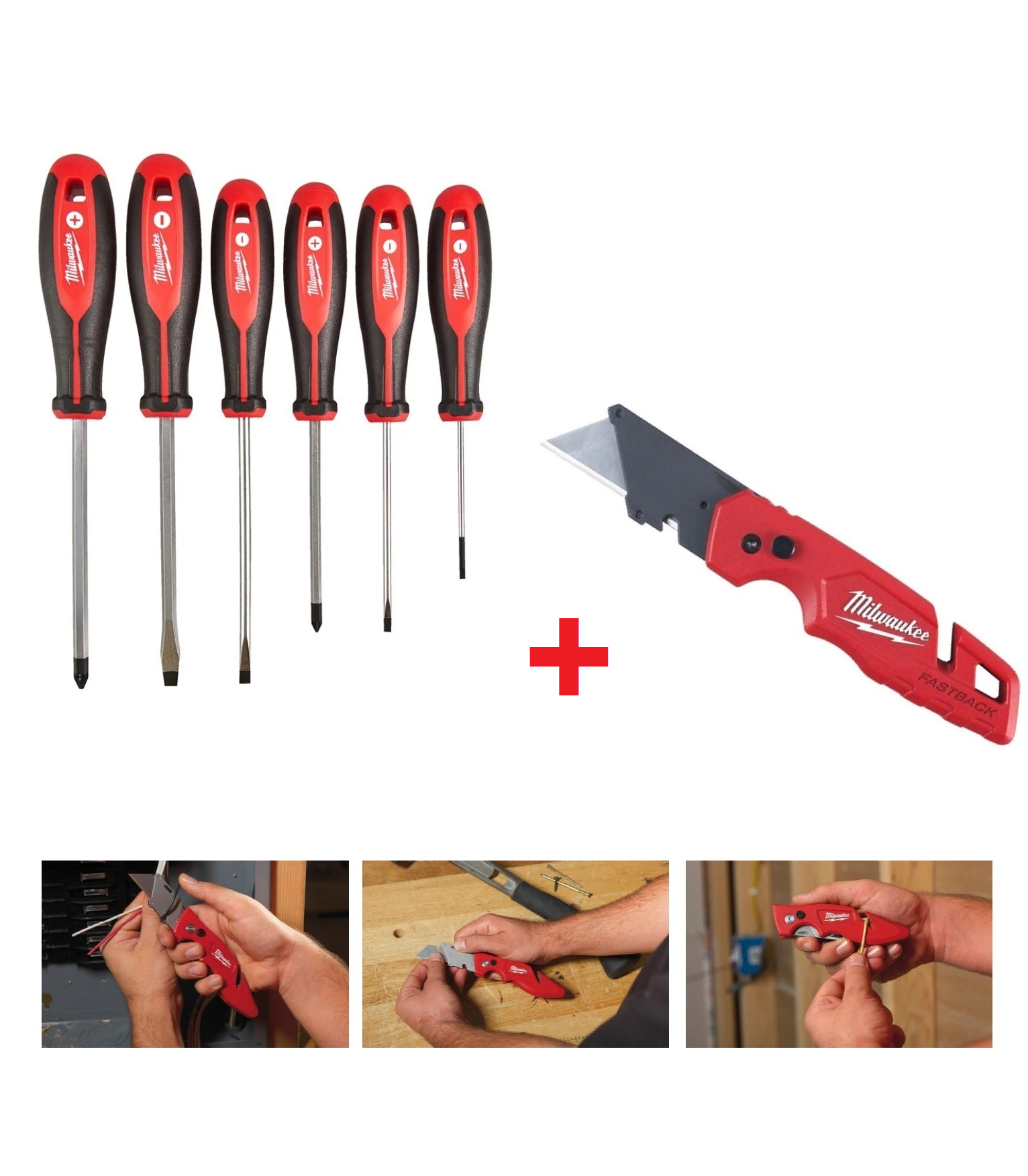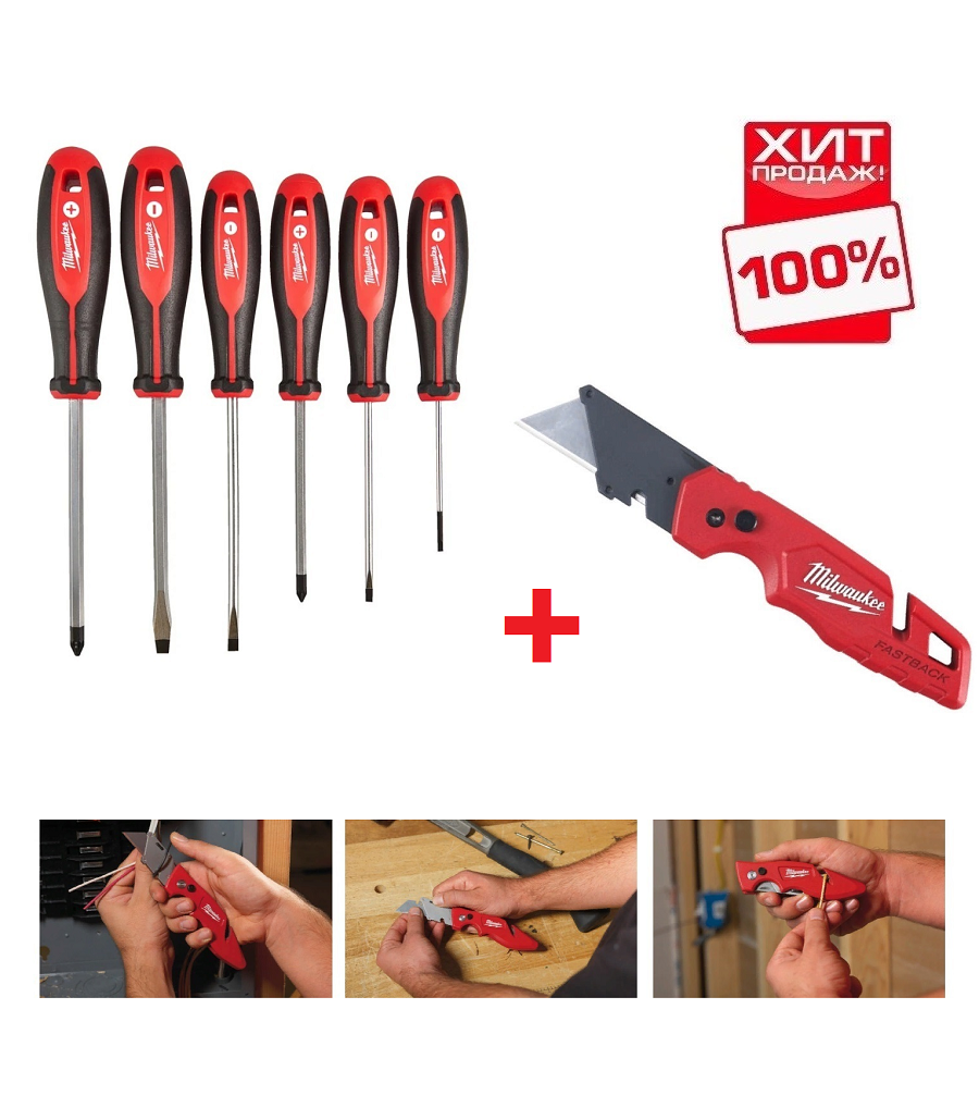 - 4932471806 Набор отверток N 1 6 шт магнитные трехгранная рукоятка SL3 / SL 4 / SL 5.5 / SL 6.5 / PZ1 / PZ2 MILWAUKEE
