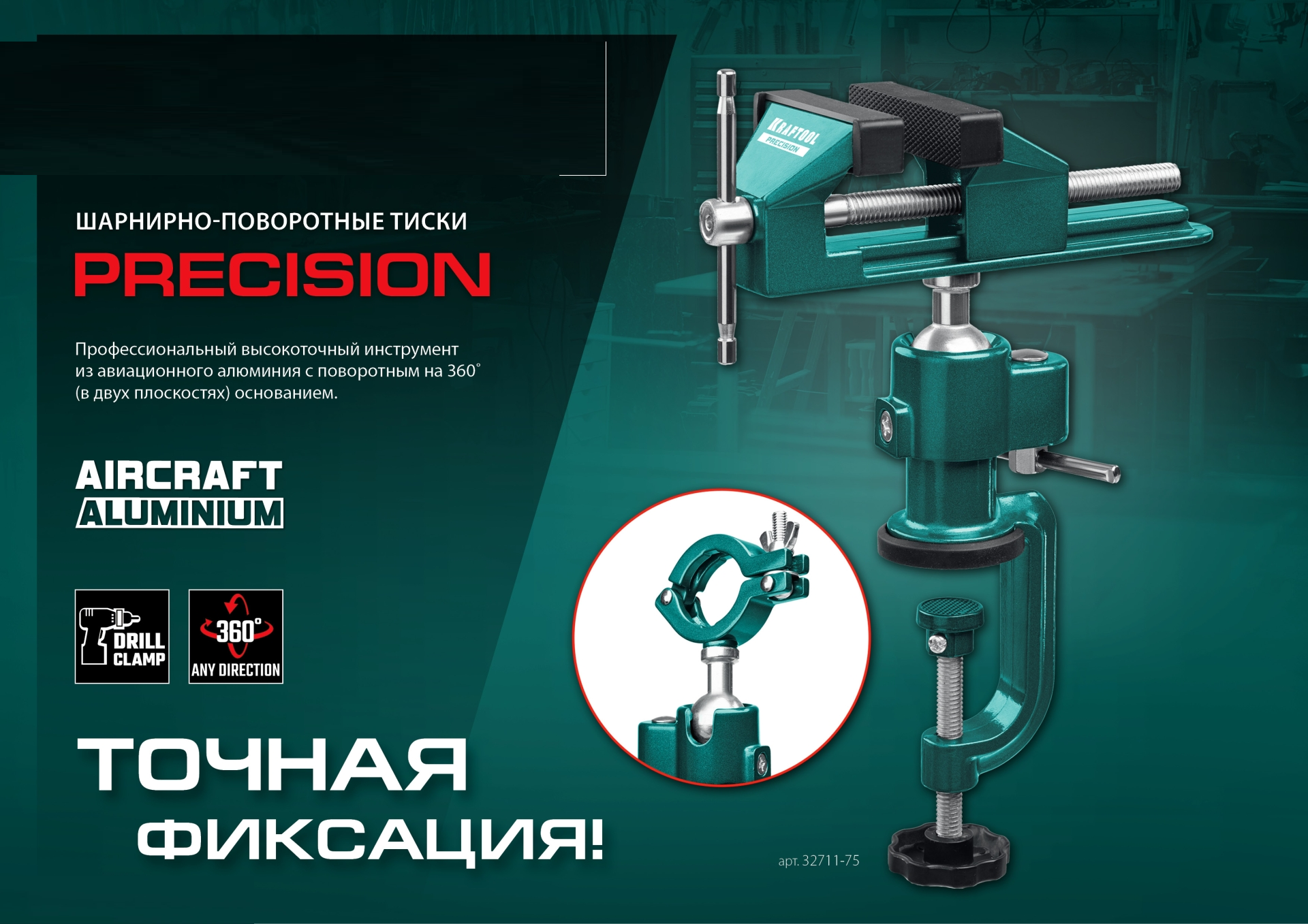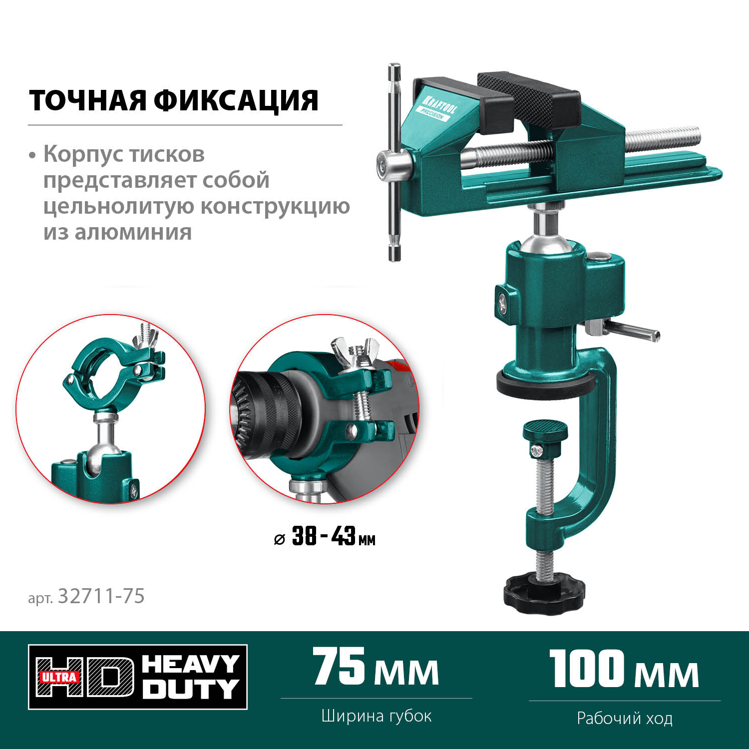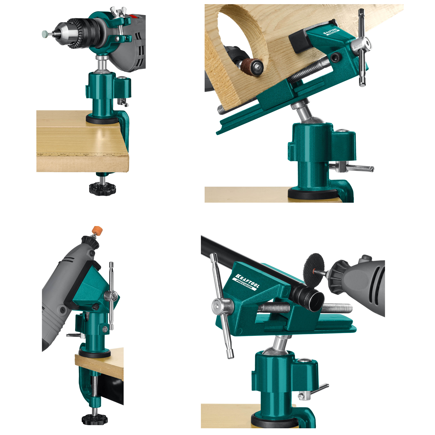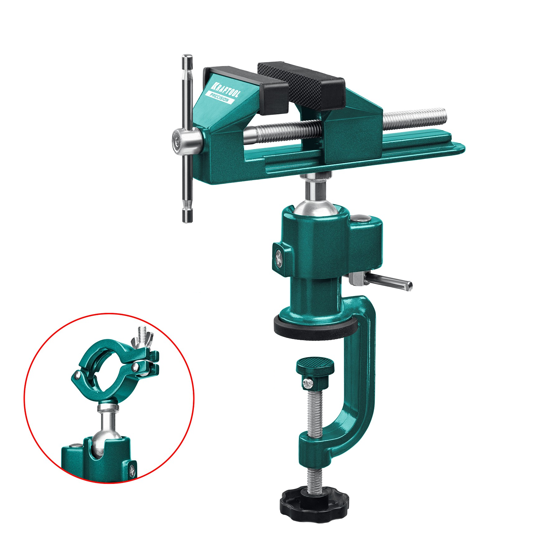 - Быстрая, надежная установка тисков на столе осуществляется с помощью струбцины.