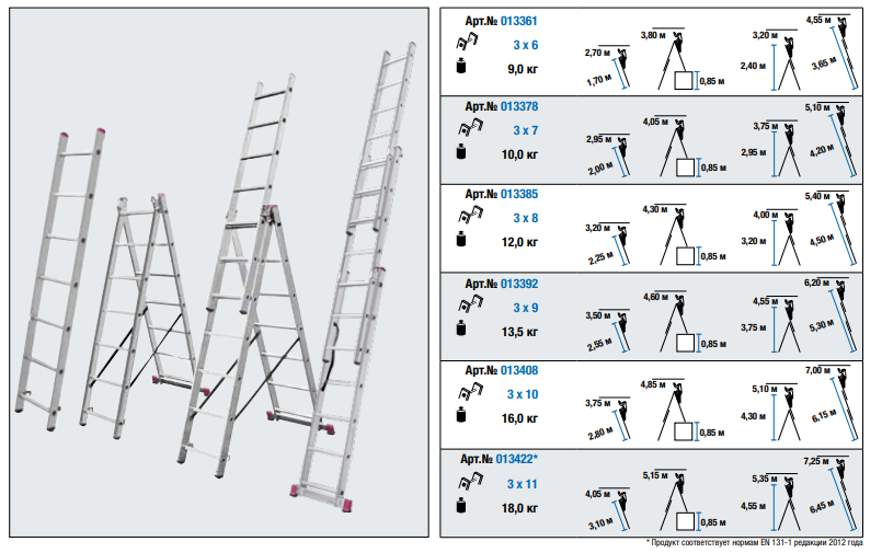 раздвижная приставная лестница с 3 - мя выдвижными секциями
