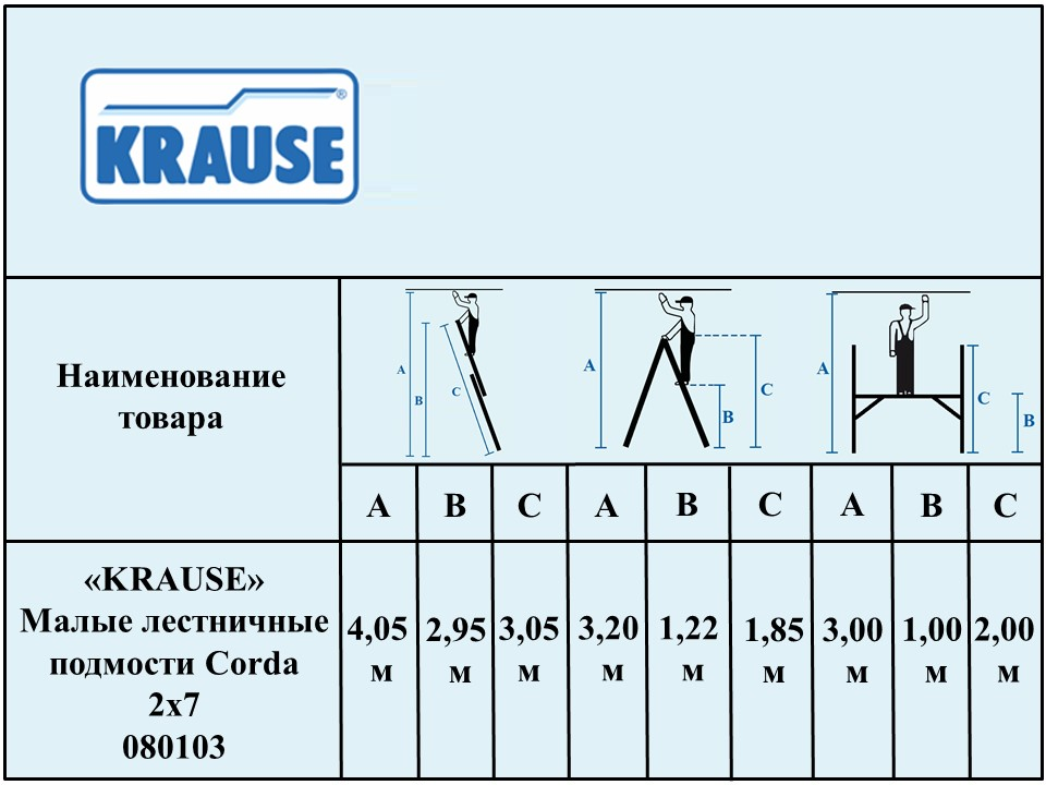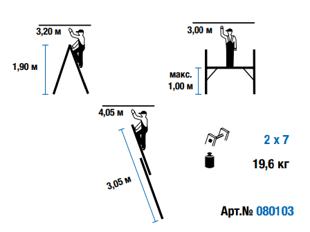 Рабочие высоты: 3,00 м; 3,20 м; 4,05 м