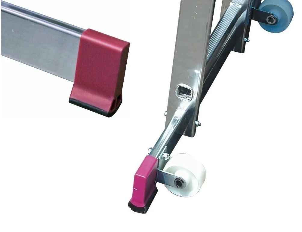 Широкая траверса с двухкомпонентными башмаками обеспечивает устойчивость и предотвращает скольжение. Фирменные наконечники на траверсе работают в 2 направлениях — их внутренняя часть плотно «сидит» в профиле, наружная обеспечит отличную сцепку даже с очень скользкой поверхностью.