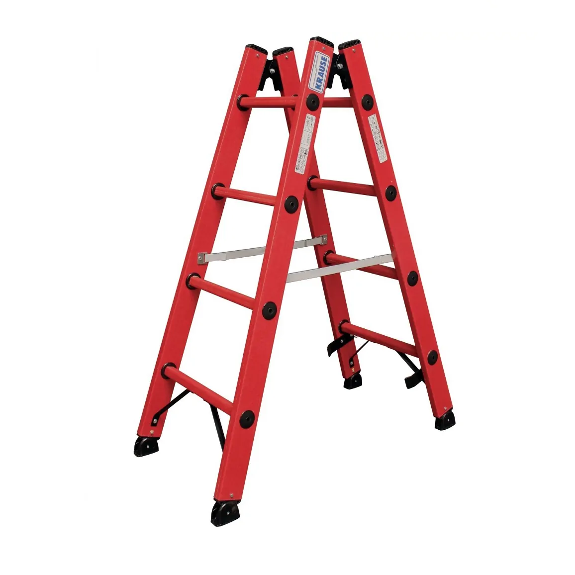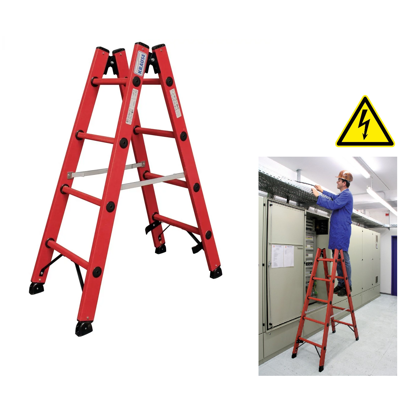 Является диэлектрической лестницей. Боковины, и перекладины изготовлены из пластика, который армирован стекловолокном.