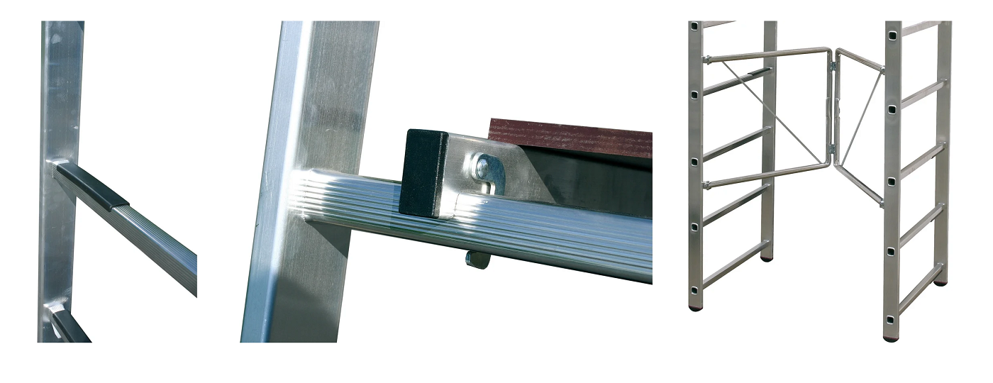 Наконечники на концах стоек подмостей направлены на увеличение адгезии с поверхностью основания и лестницей.