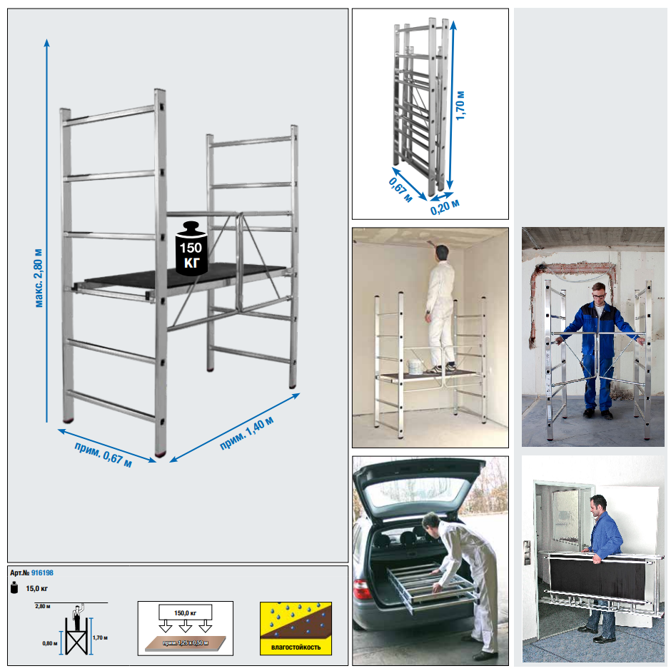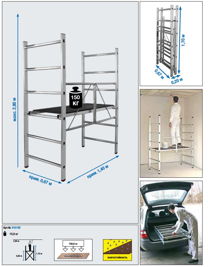 Грузоподъемность подмостей до 150 кг. Вы сможете расположиться со всеми необходимыми материалами. инструментами.