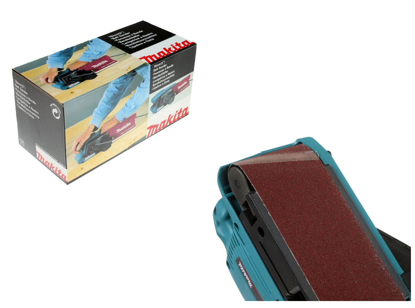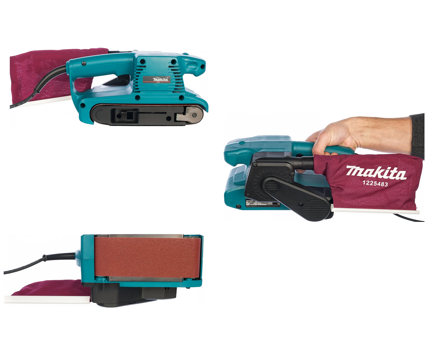 Ленточная шлифмашина. Небольшие размеры и сочетание хороших технических характеристик увеличат комфорт во время работы.