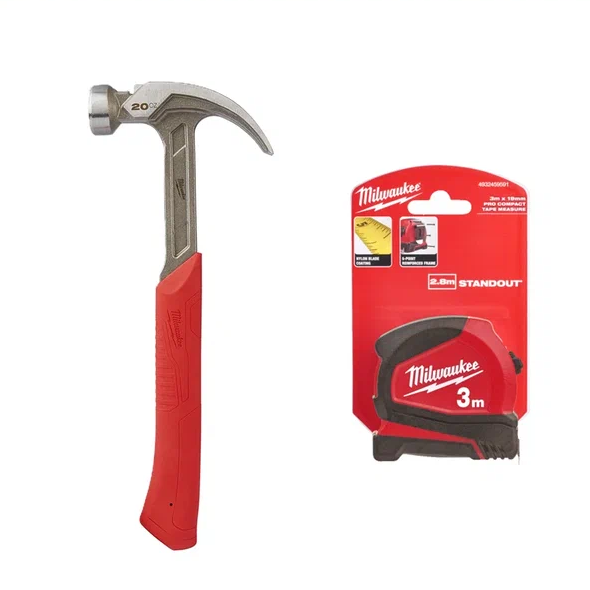- Молоток плотницкий Milwaukee 20 унций, 0.57 кг с закругленным гвоздодером, магнитный держатель для гвоздей 4932464028