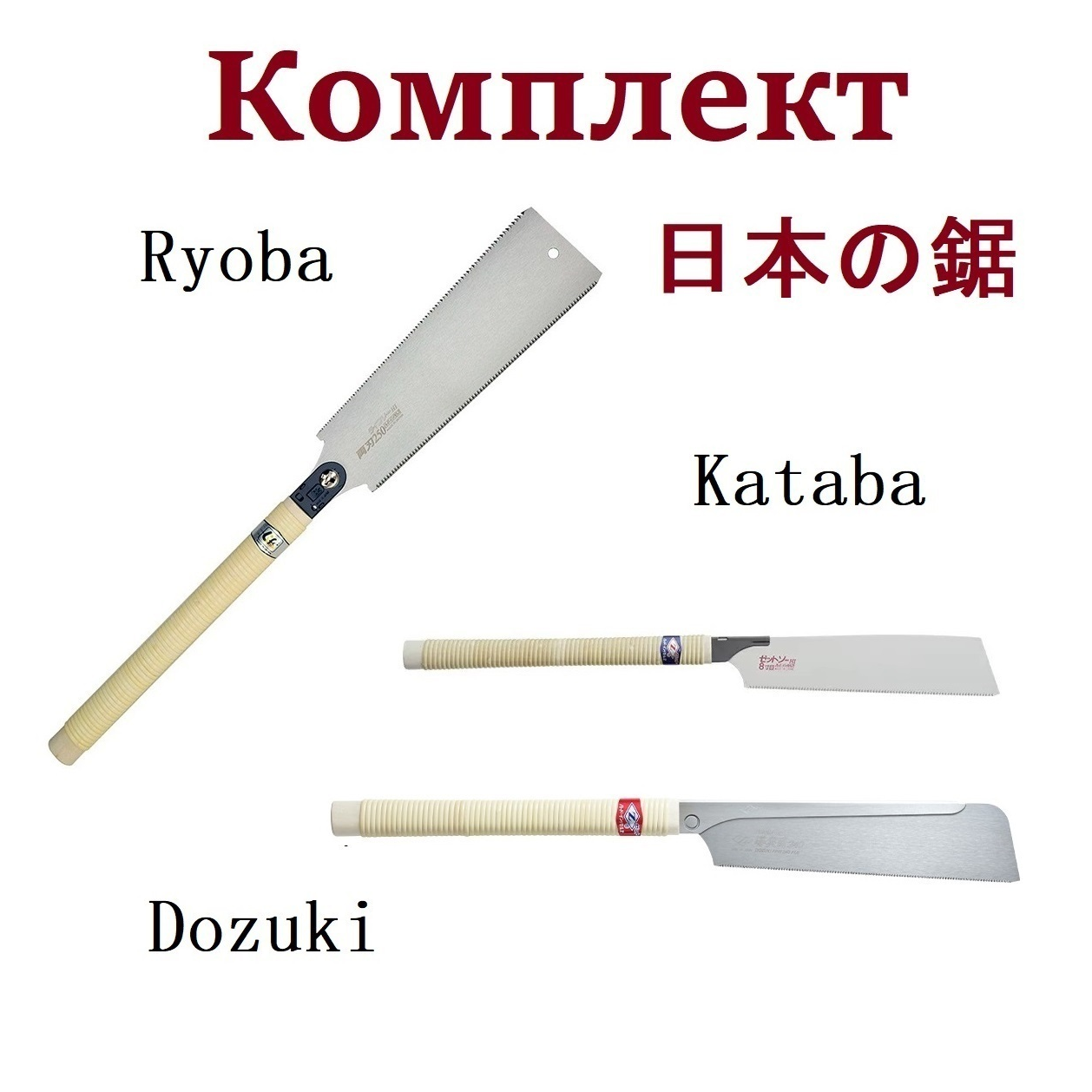 ОПТИМАЛЬНЫЙ НАБОР Японские столярные пилы 3 предмета: Пила двусторонняя Ryoba 250 мм 18 / 9 TPI 52301, Пила безобушковая Kataba Cross 250 мм 18 TPI Z.15006, Пила обушковая универсальная Dozuki Fine 240 мм 25 tpi ZETSAW Z.07121 N012-3AM