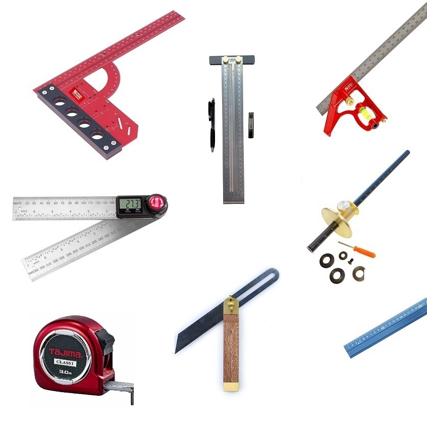 Набор столярный ДЛЯ ИЗМЕРЕНИЯ И РАЗМЕТКИ : Нож разметочный, Рейсмус 150 мм, Угольник разметочный 300 мм и комбинированный угольник 300 мм, Линейка 60 см, Линейка Т-образная 300 мм, Рулетка 3 м, Малка 225 мм, Угломер цифровой N025-9AM - всего 9 предметов