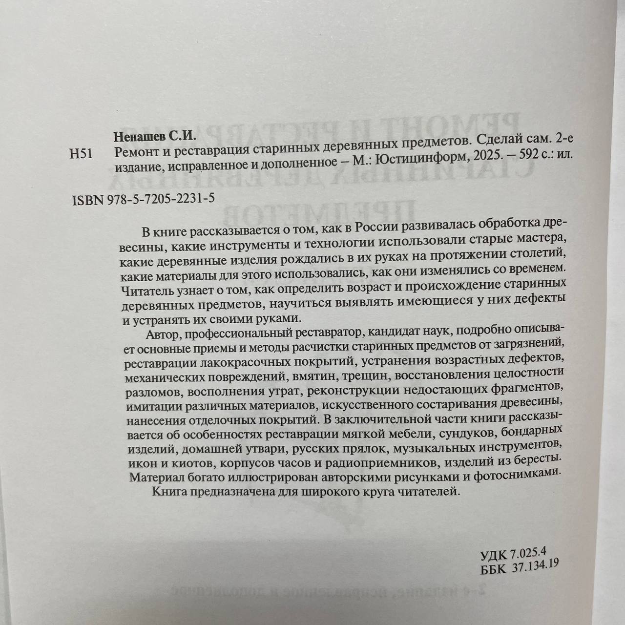 - Углубленно повествуется о том, как определить возраст и происхождение старинных деревянных предметов, как научиться выявлять имеющиеся у них дефекты и устранять их своими руками.