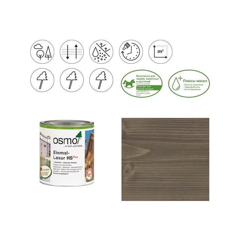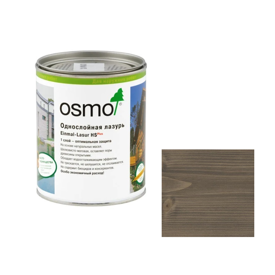Новинка! Однослойная лазурь для древесины OSMO Einmal-Lasur HS Plus 9207 Серый кварц 0,75 л для наружных, внутренних работ 11101572
