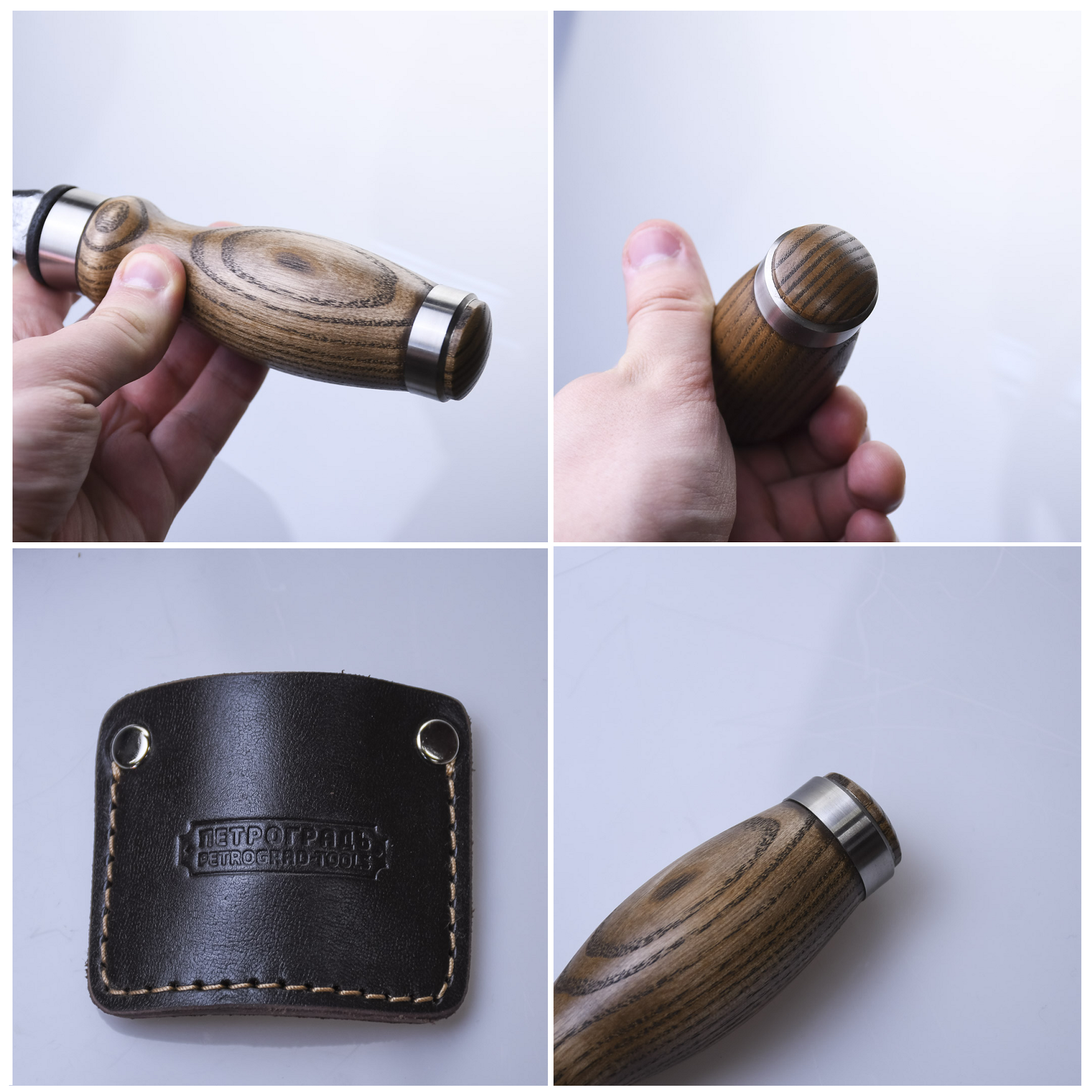 Ручка изготавливается из древесины ясеня с подборкой направления волокон. Обжата стальным кольцом в районе торца и крепления полотна к рукояти. Не будет раскалываться, меньше подвергается деформация от применения ударного инструмента:киянки, молотка и т.п.