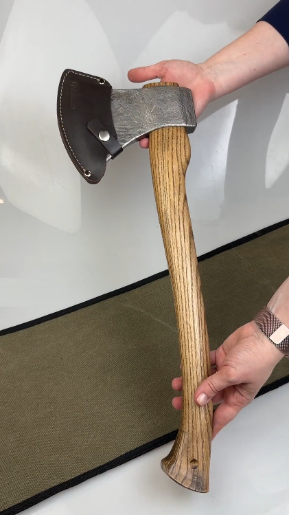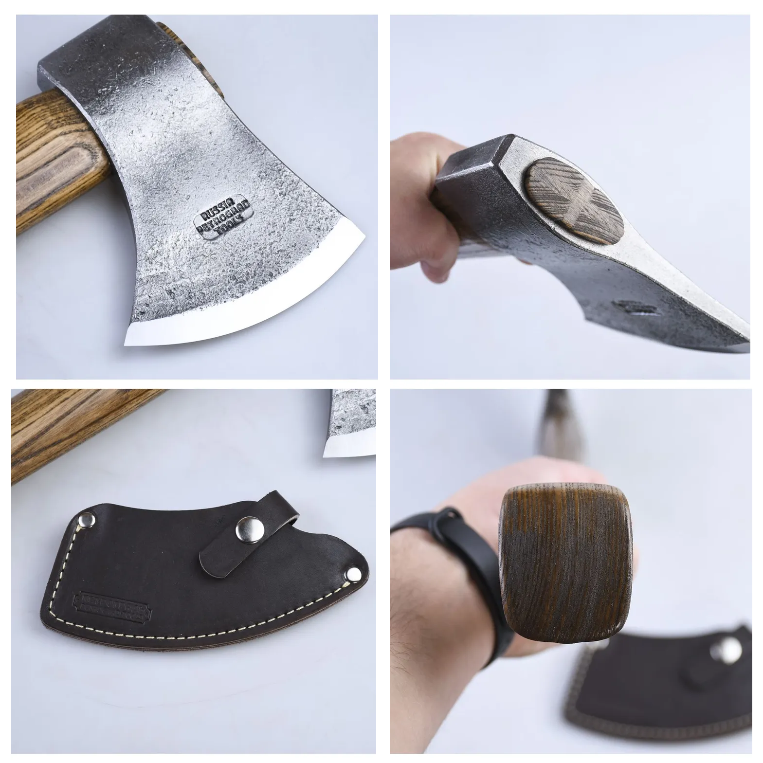 Каждый топор Петроградъ выполняется вручную с вниманием к деталям. Для головы топора используется рессорная сталь 65Г, она обладает наилучшей ударной вязкостью. Рукояти из цельного куска массива ясеня без сучков и покрыты специальным маслом, обладающим экстремальной устойчивостью к образованию царапин.
