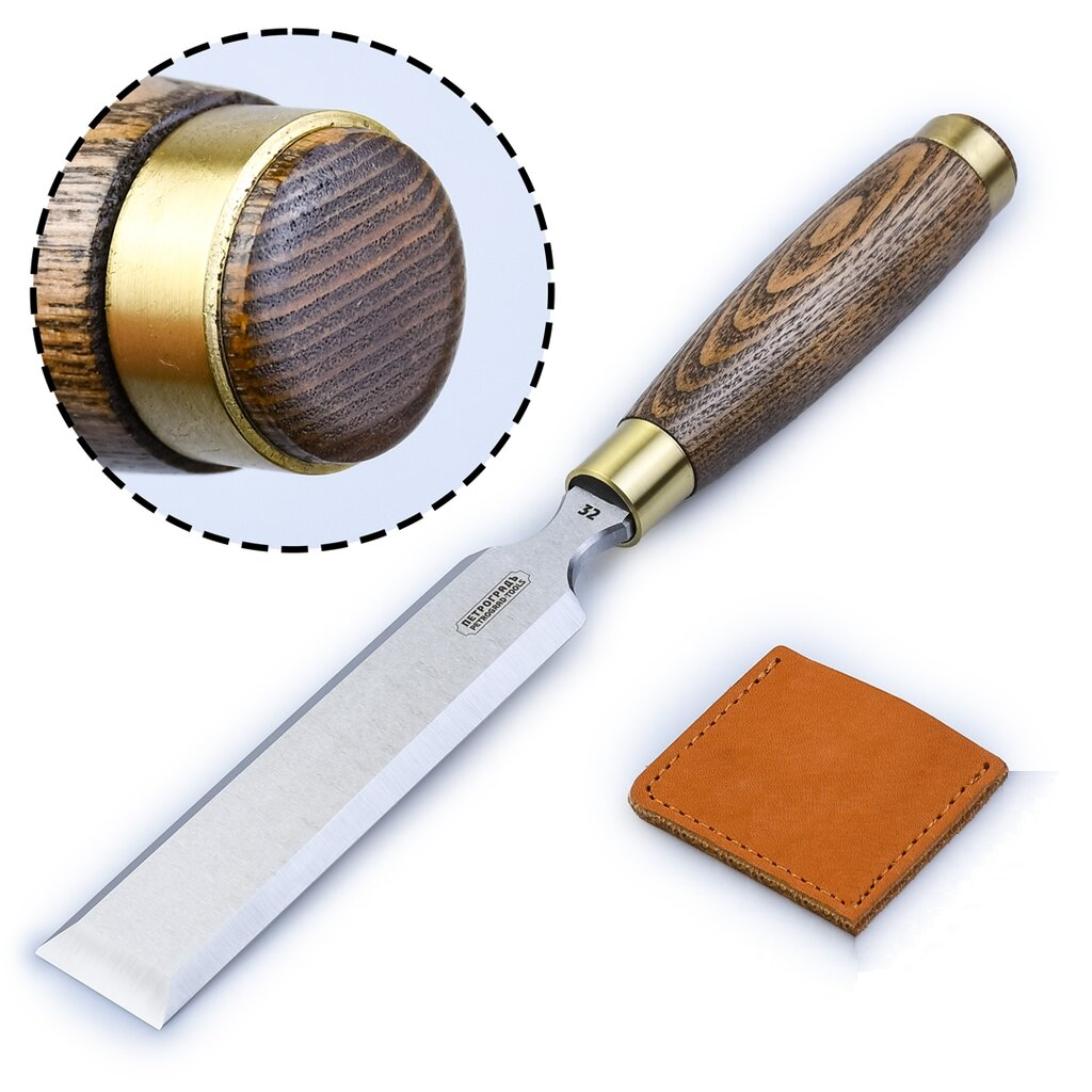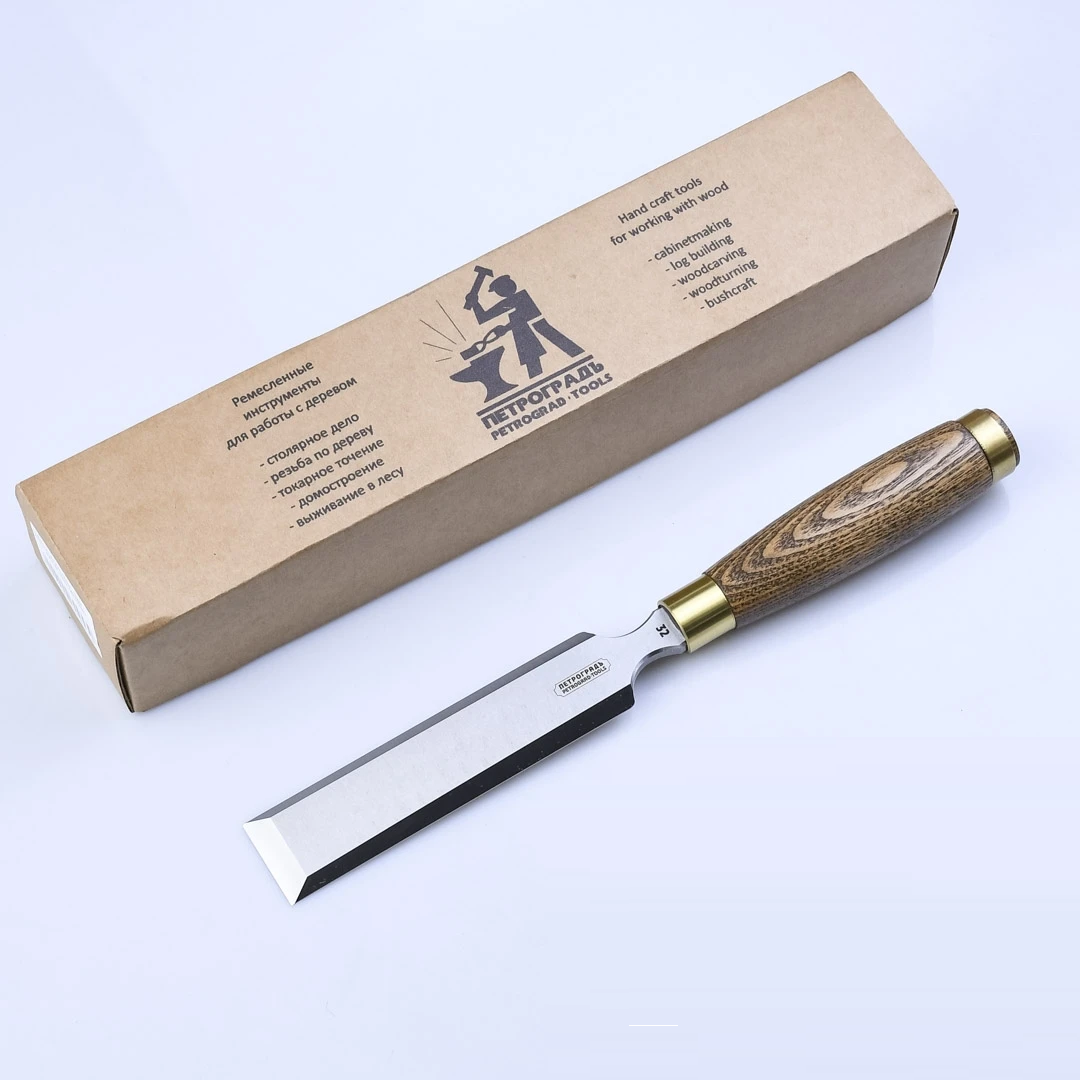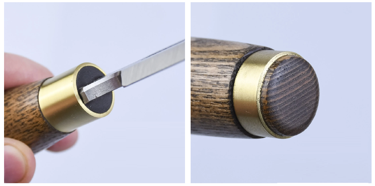 Деревянная рукоять из твердых пород древесины, усилена латунным кольцом для силовой работы с киянкой.