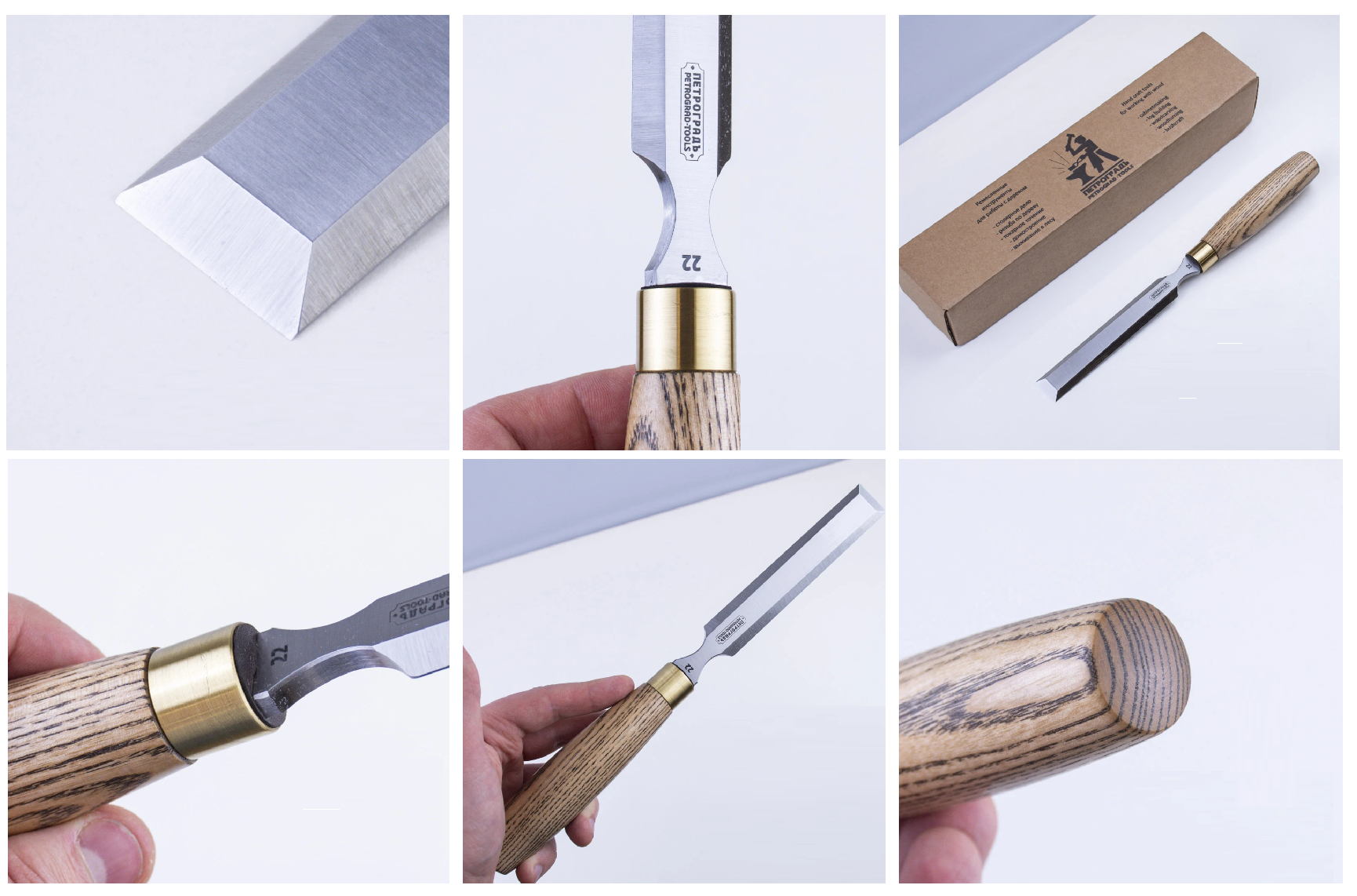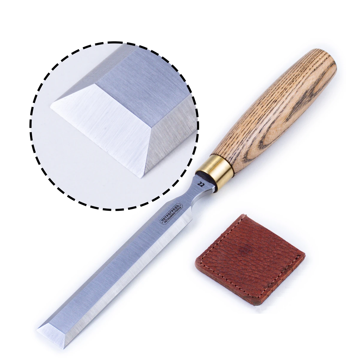 Деревянная рукоять выполнена из твердых пород древесины, усилена латунным кольцом для силовой работы с киянкой.