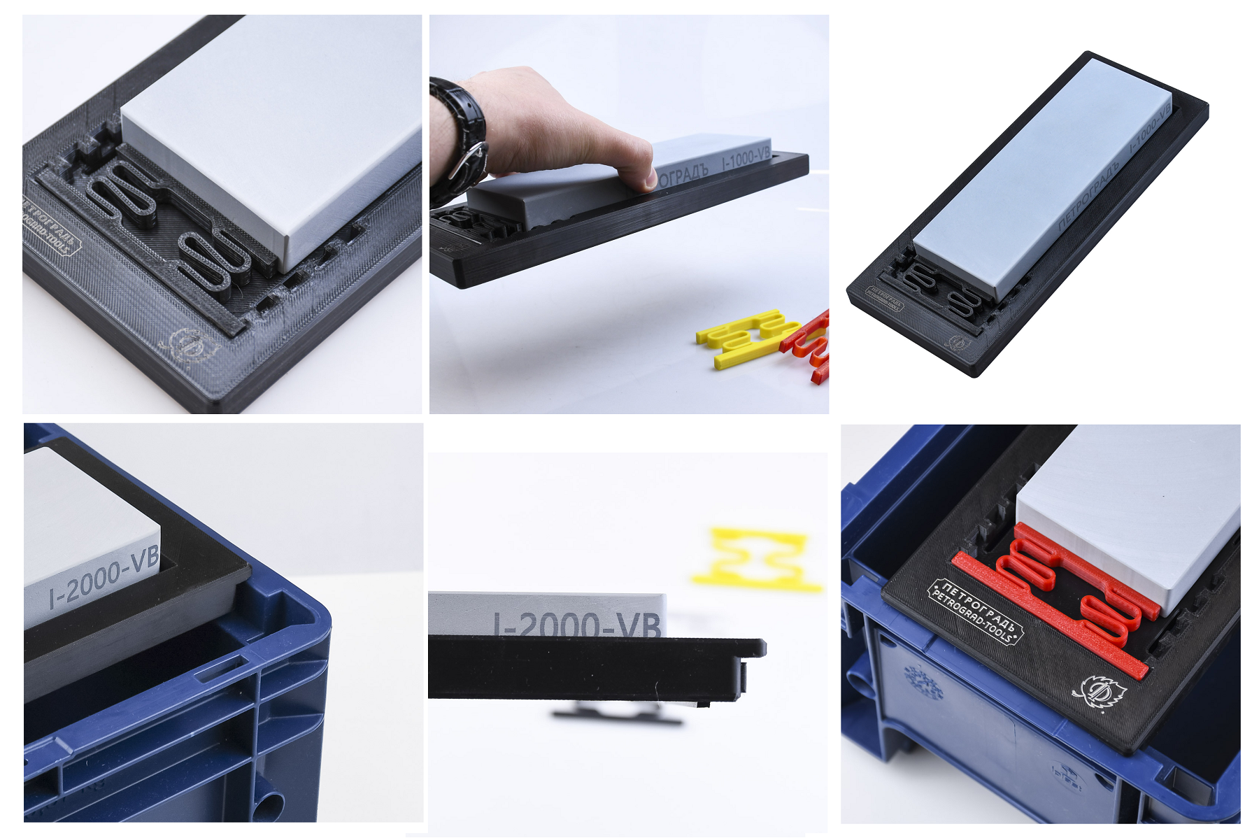 - Упоры для более надёжного удержания держателя на краях ёмкостей для заточки.