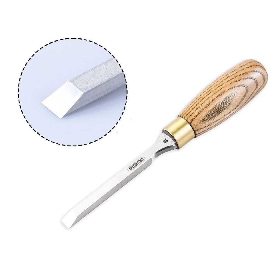 Полотно из стали 9ХС и закалено до твердости 59-61HRc. Спинка столярной стамески или рабочая сторона выровнена на плоскошлифовальных станках.