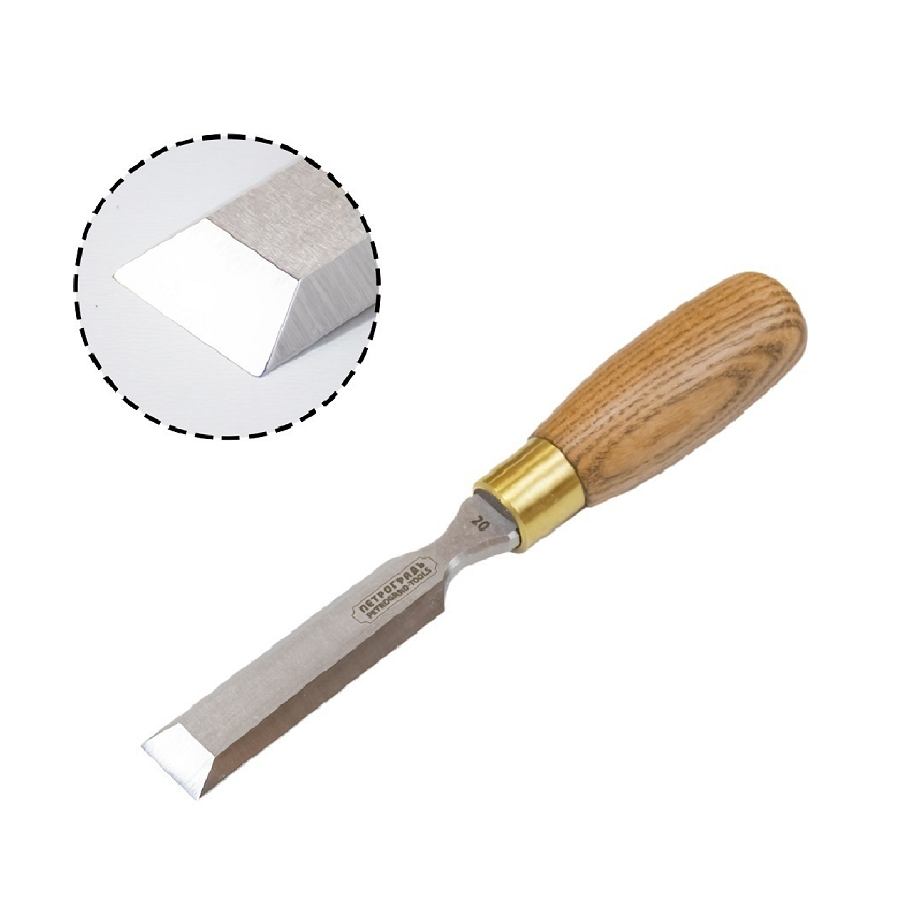 Столярные стамески по дереву самых распространенных размеров. Форма лезвия имеет боковые скосы для работы в труднодоступных местах: соединения ласточкин хвост, шип-проушина, впол дерева, сковородней и пр..