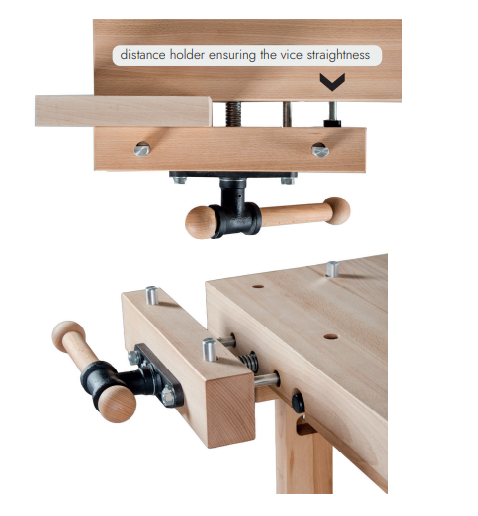 Прочное подверстачье из массива бука крепится болтами, которые при необходимости можно подтянуть в процессе эксплуатации.