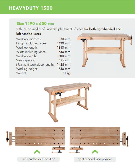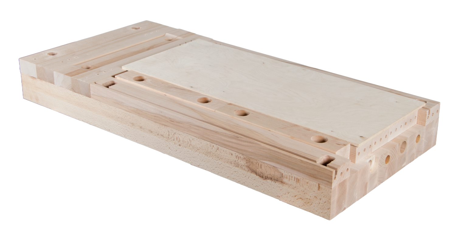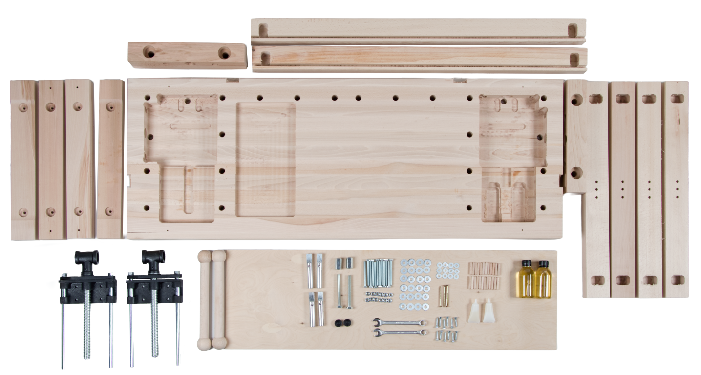Прочное подверстачье из массива бука крепится болтами, которые при необходимости можно подтянуть в процессе эксплуатации.
