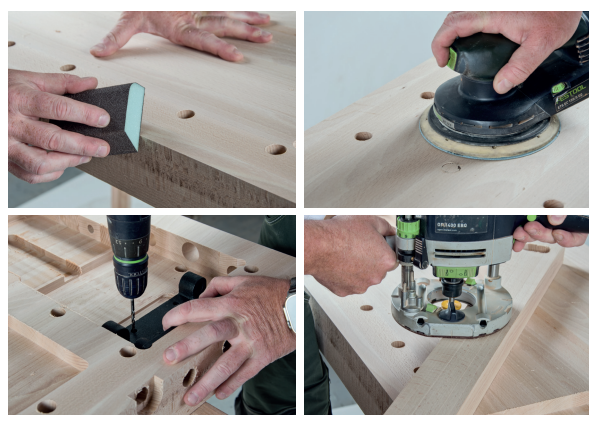 Прочное подверстачье из массива бука крепится болтами, которые при необходимости можно подтянуть в процессе эксплуатации.