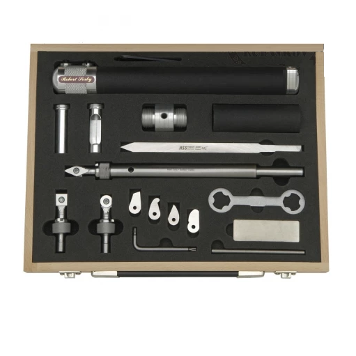 Этот набор, упакованный в элегантный деревянный кейс, станет идеальным подарком как для начинающих, так и для опытных токарей.