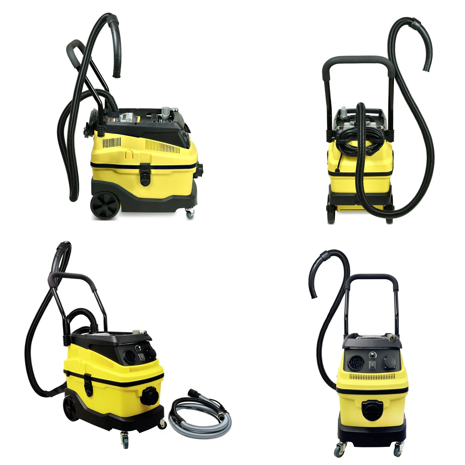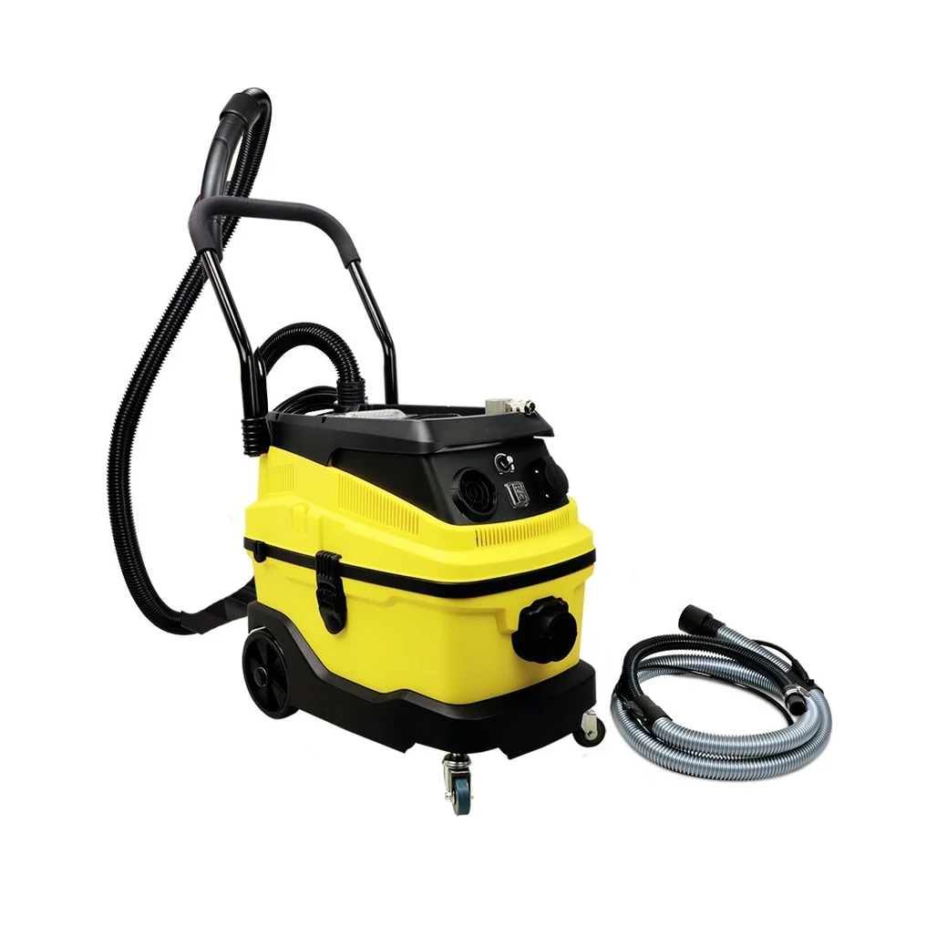 Универсальный профессиональный пылесос имеет эргономичную конструкцию, большое количество функций, 2 отверстия для всасывания, встроенный мешок для сбора пыли, водяной фильтр, трехступенчатую систему HEPA фильтрации для профессиональной работы по удалению сверхтонкой пыли.