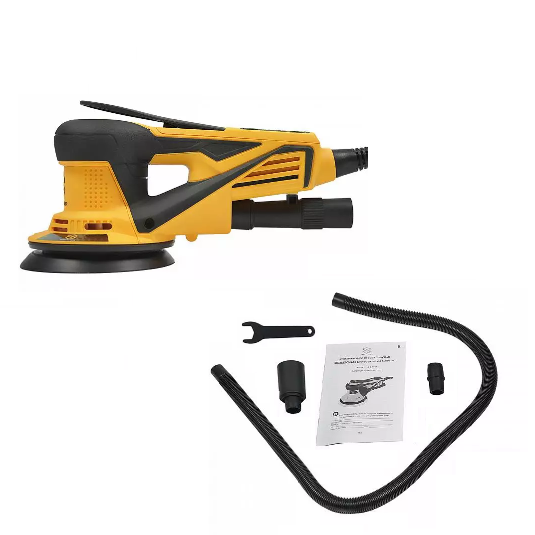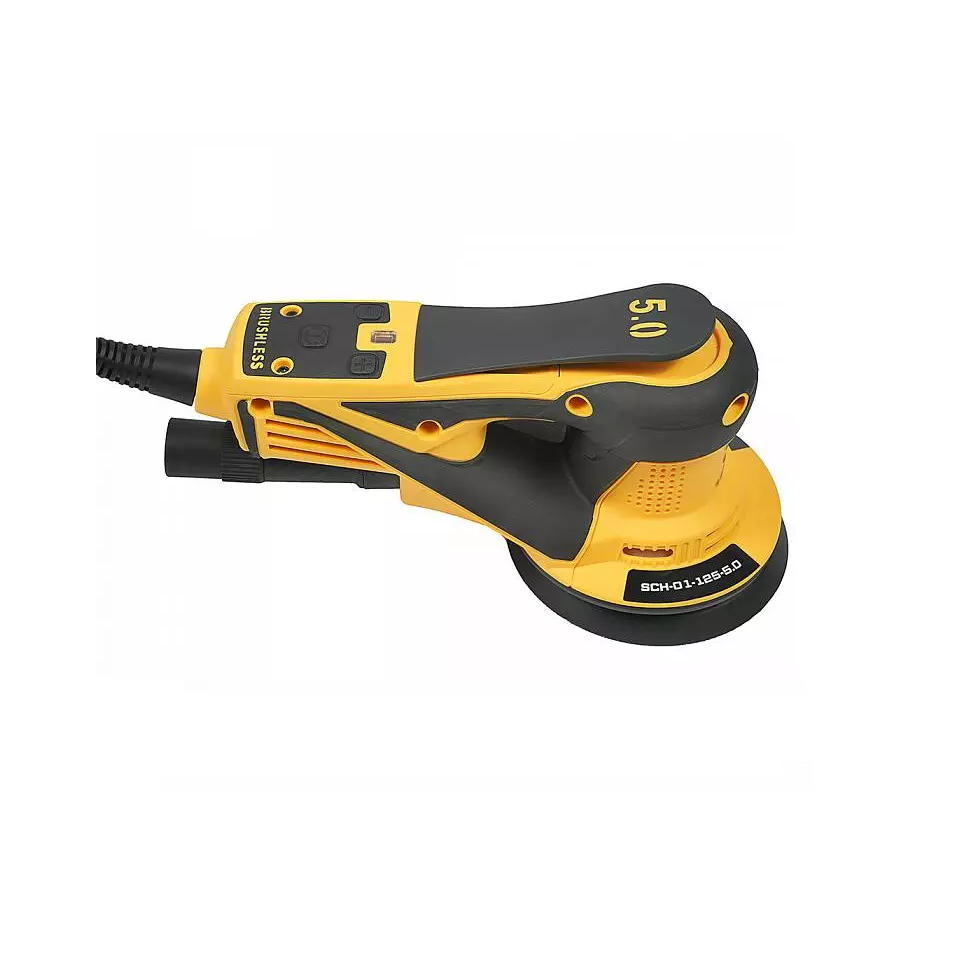 Эксцентрик с амплитудой 5 мм, диск D 125 мм позволят эффективно обработать поверхность, диапазон оборотов от 4 000 до 10 000 об/мин с электронной регулировкой дадут возможность подбирать режим под материал и задачу. Плавный пуск исключит рывки при включении, тормоз подошвы обеспечит дополнительную безопасность.