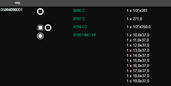 10 головок Zyklop с функцией фиксации: 10.0x 37.0; 11.0x 37.0; 12.0x 37.0; 13.0x 37.0; 14.0 x37.0; 15.0 x37.0; 16.0 x37.0; 17.0 x37.0; 18.0 x37.0; 19.0 x37.0