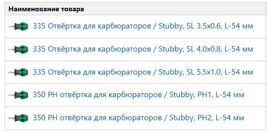 335 Отвёртка для карбюраторов / Stubby по 1 шт.: