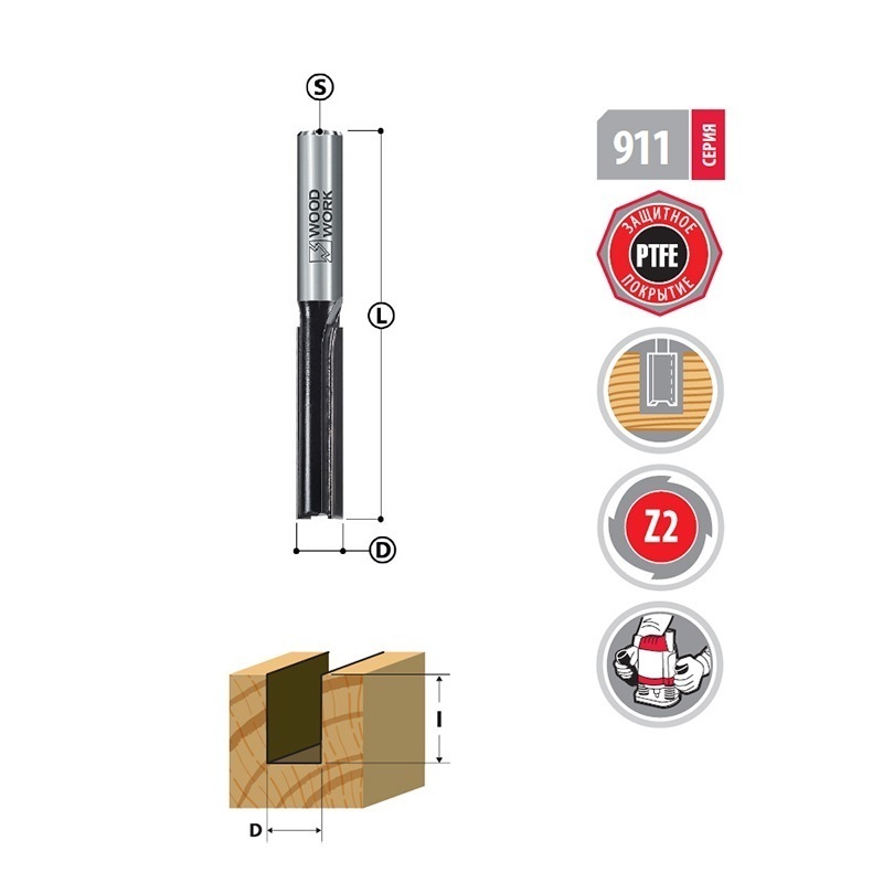 Для фрезерования пазов с эффективным отводом стружки в древесине и деревосодержащих композитах.