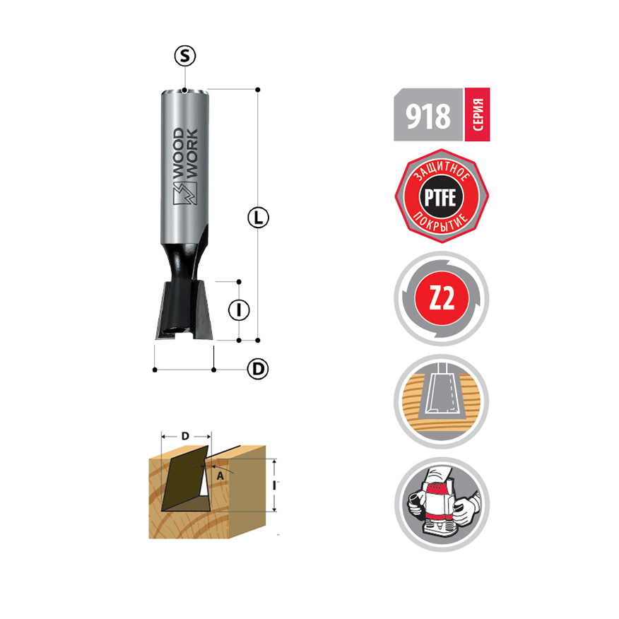 Концевая фреза ласточкин хвост Серия 918 Вудворк.