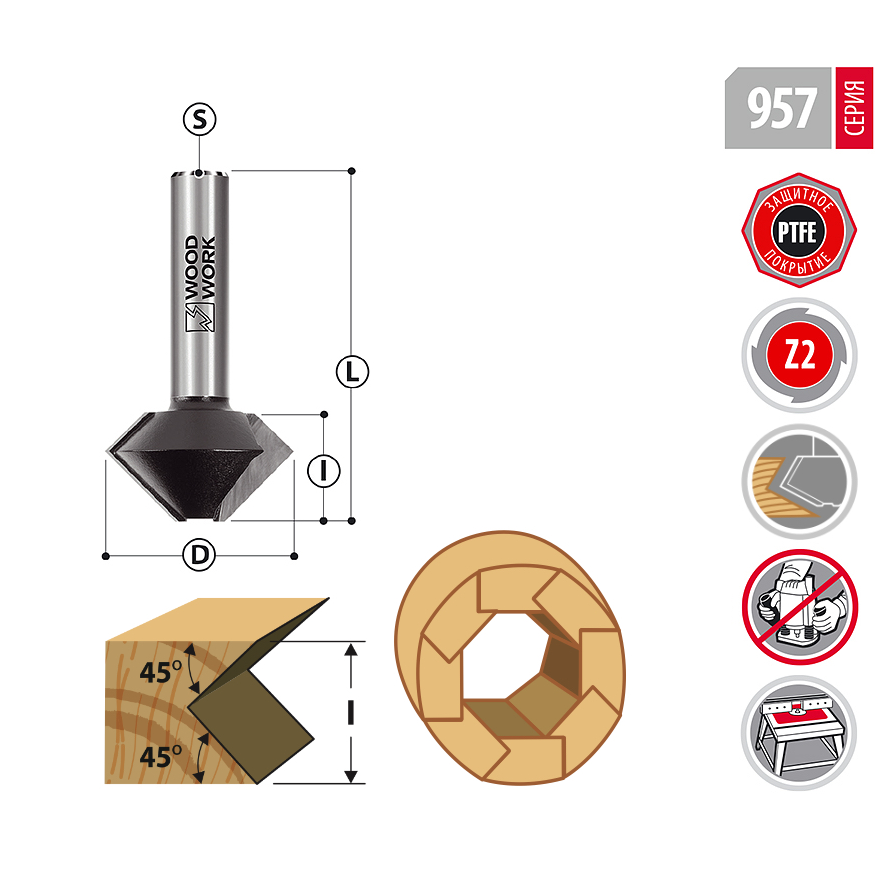 Фреза для соединения под углом - 45° Серия 957 Woodwork.