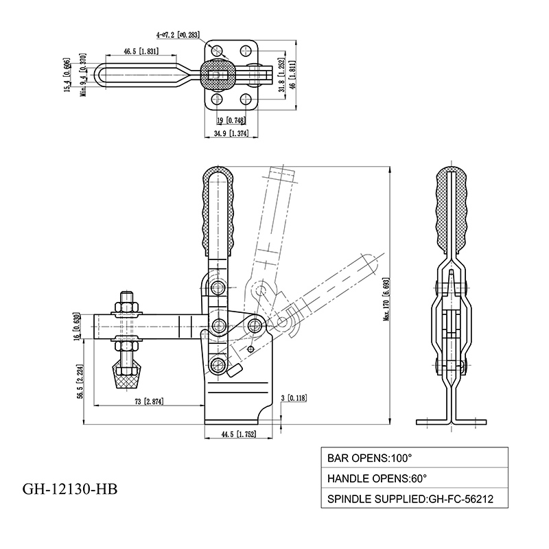 - Фиксированный прижимной болт, фланцевое основание
