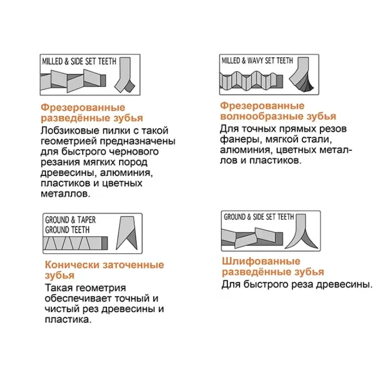- Пилки лобзиковые по древесине Curved cuts, fine finishing on both sides of surface on hard/softwood Fast coarse cuts on softwood.
