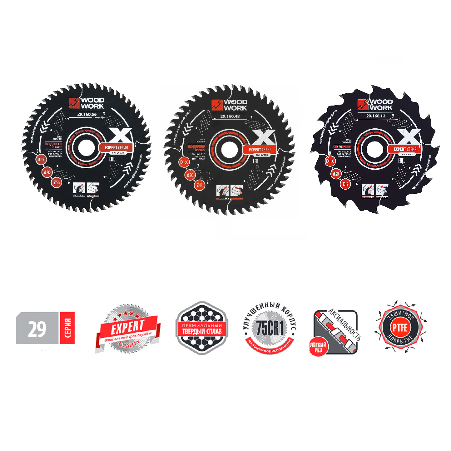 - Диск пильный Эксперт 160x2,2/1,6x20 Z48 A10 ATB10 универсальный 29.160.48