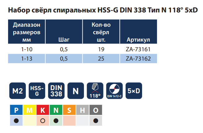 - Сверло общего применения, изготовлено из высококачественной быстрорежущей стали HSS-G M2 (аналог Р6М5)