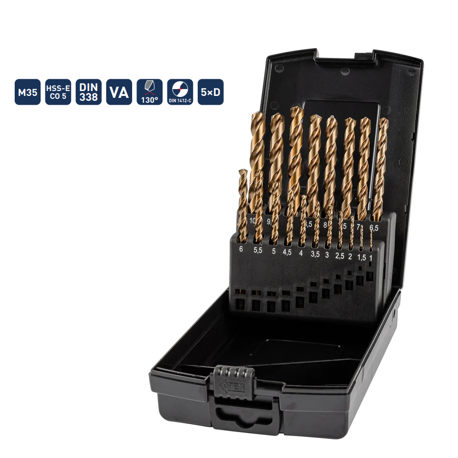 - Спиральные - индустриальное качество - DIN 338 - HSS-E Co 5 - Тип VA - 5xD