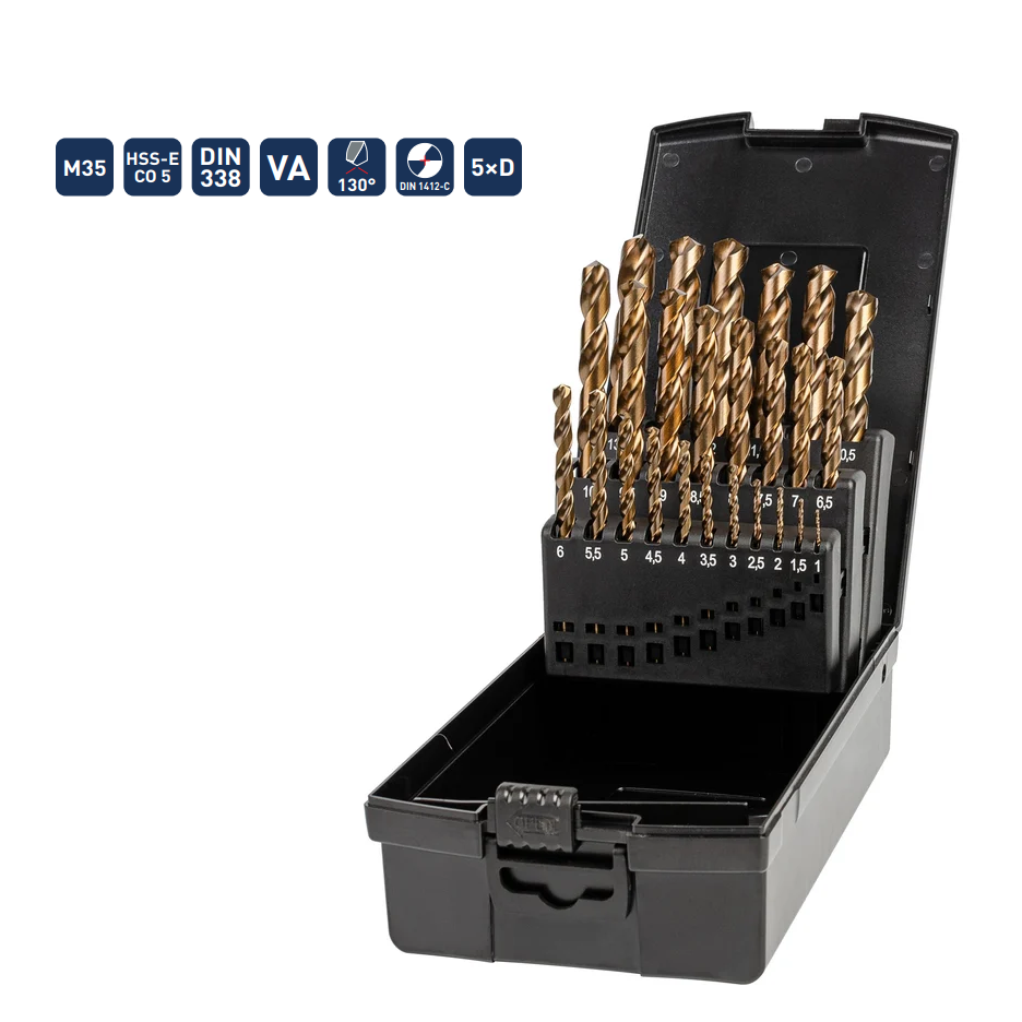 - Спиральные - индустриальное качество - DIN 338 - HSS-E Co 5 - Тип VA - 5xD