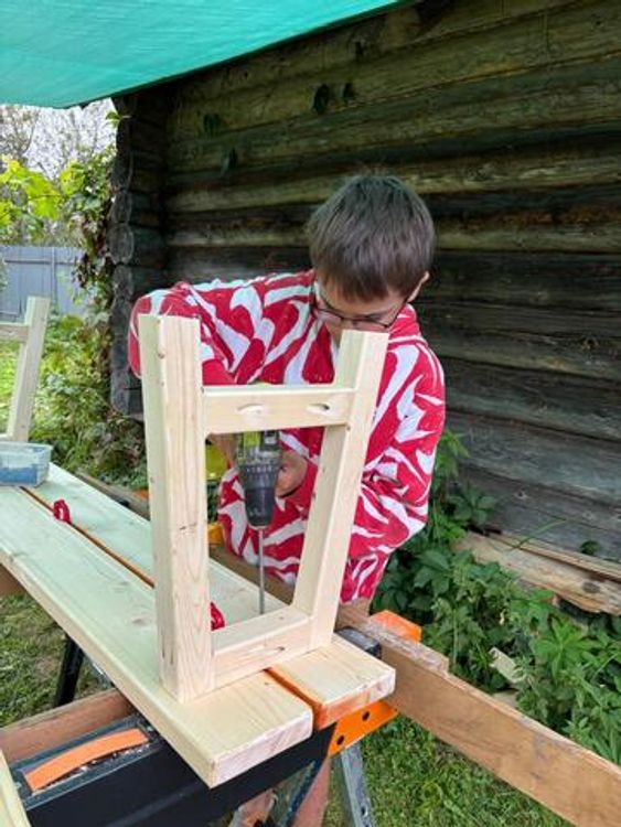 Для начала я попробовал их использовать для создания лавочки с ногами под углом 7 градусов. На приложенном транспортире поставил угол 83 град и по нему и ложному полотну выставил стусло на этот градус. И дальше все углы на ножках и царгах пилил по стуслу. Всё сошлось великолепно. Главное - ничего не менять.
